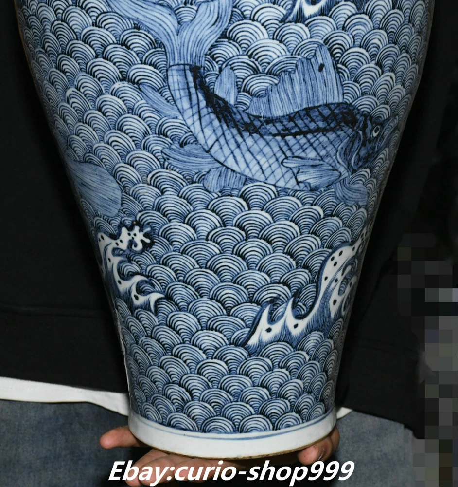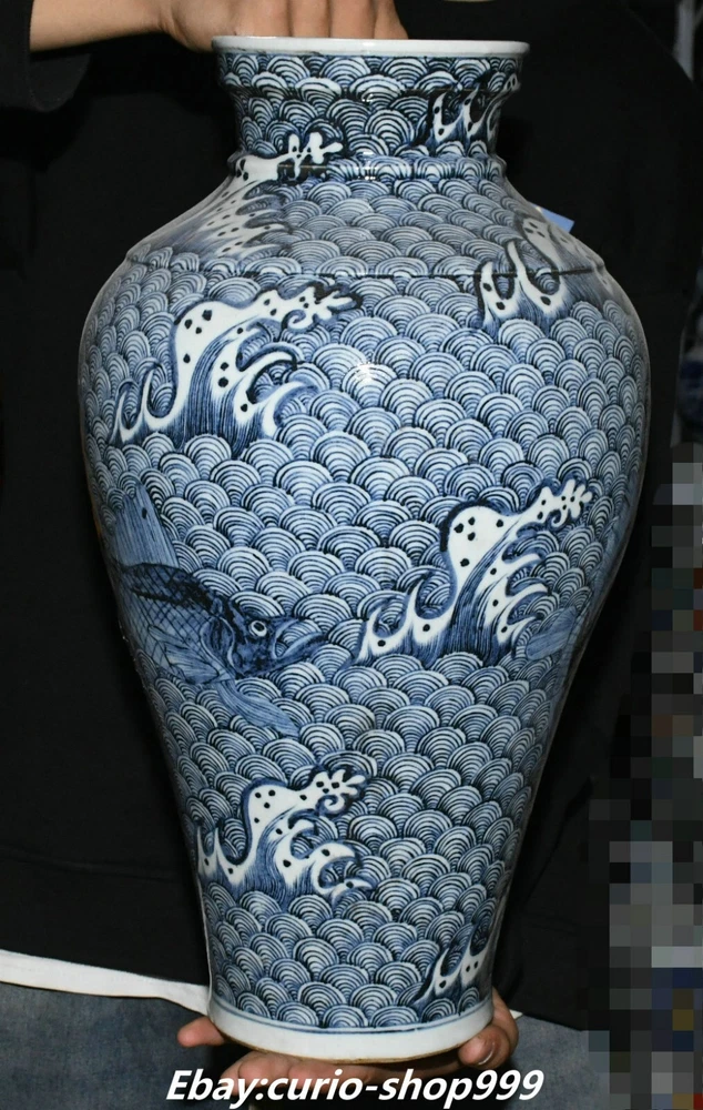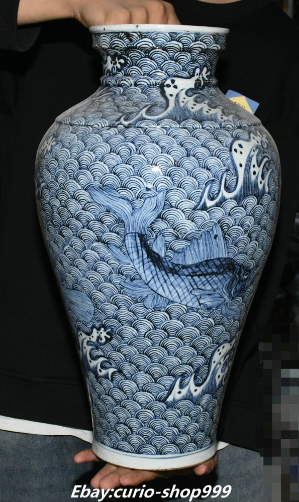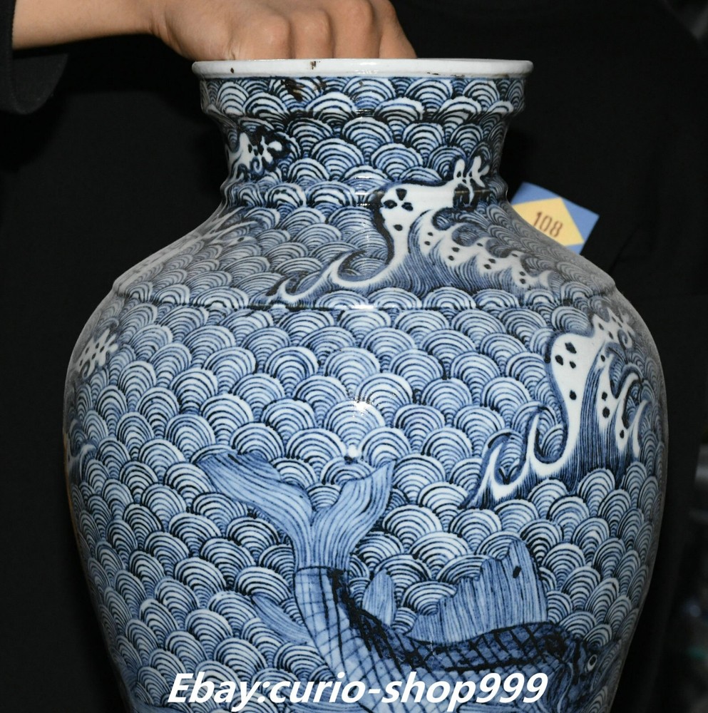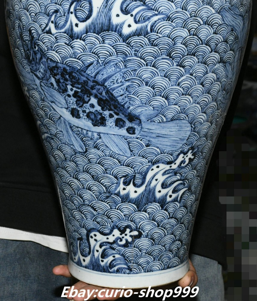 **** Welcome to our antique & Collectable Shop : Porcelain**** Description: Here is an 17.3" China Dynasty Blue White Porcelain Fish Goldfish Animal Flower Bottle Vase . It is in good condition, and was created by skilled craftsmen in traditional style with fine handcrafts.This is a great piece of valuable collection, a valuable personal alter or a very good present. the handwork is very fine with incredible detailling. Don't miss out this chance to get it.Wish you good luck! . Material : Blue White Porcelain Plating : Chinese Style : Same as photos showing Size : High 17.3 Long 9.4 Breadth 9.4 (inch) Condition Perfect Condition. Perfect, with no scratches, flaws or repairs. Weight: 7.6 KG----included the weight of packing materials Shipping cost to all over the world countries in Free Honored Customers: We are selling the collectibles products and crafts in Beijing ,China since 1993 and collected them all over the world all the time . In our shop the bronze sculpture, animal, vase, urn, flowerpot,Incense Burner.Table chair sets. Militaria goods. buddha statues, Bodhisattva Statues, Buddhist Ritual Items etc is our speciality .Many of the items we sell come from our own personal collection and have been in our family for a very long time .My great-grandfather was the first in this family to start collecting art & antiques when he still lived in San Xi and Tibet around 1922 ,some of the paintings he once collected can now be seen in museums around the globe.We won't make money from the shipping cost, if you dislike the item when you receive it,we can refund all of your money to you within thirty days. Please confidence for bidding . We recommend the combine shipping and offer you an big price discount if you order more items together ! 2024.10.08 四 号
