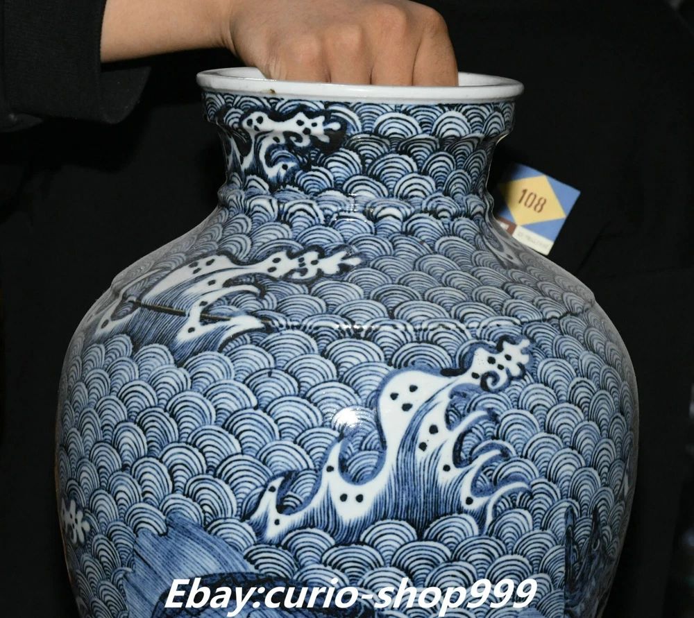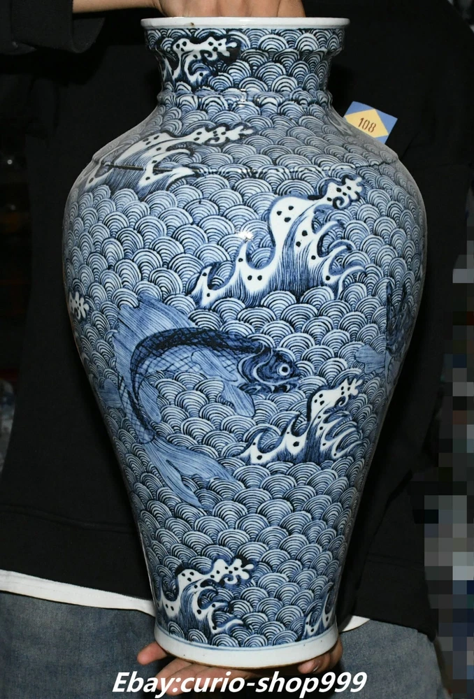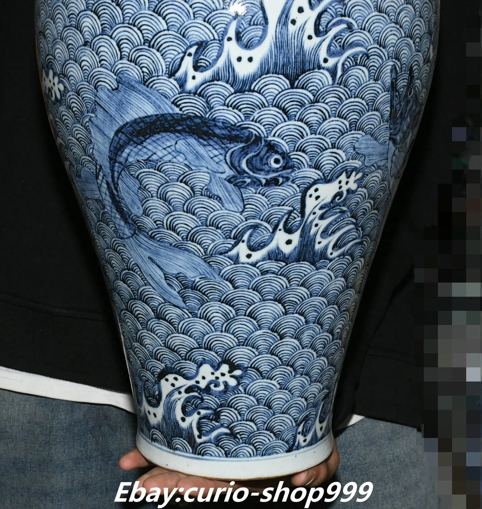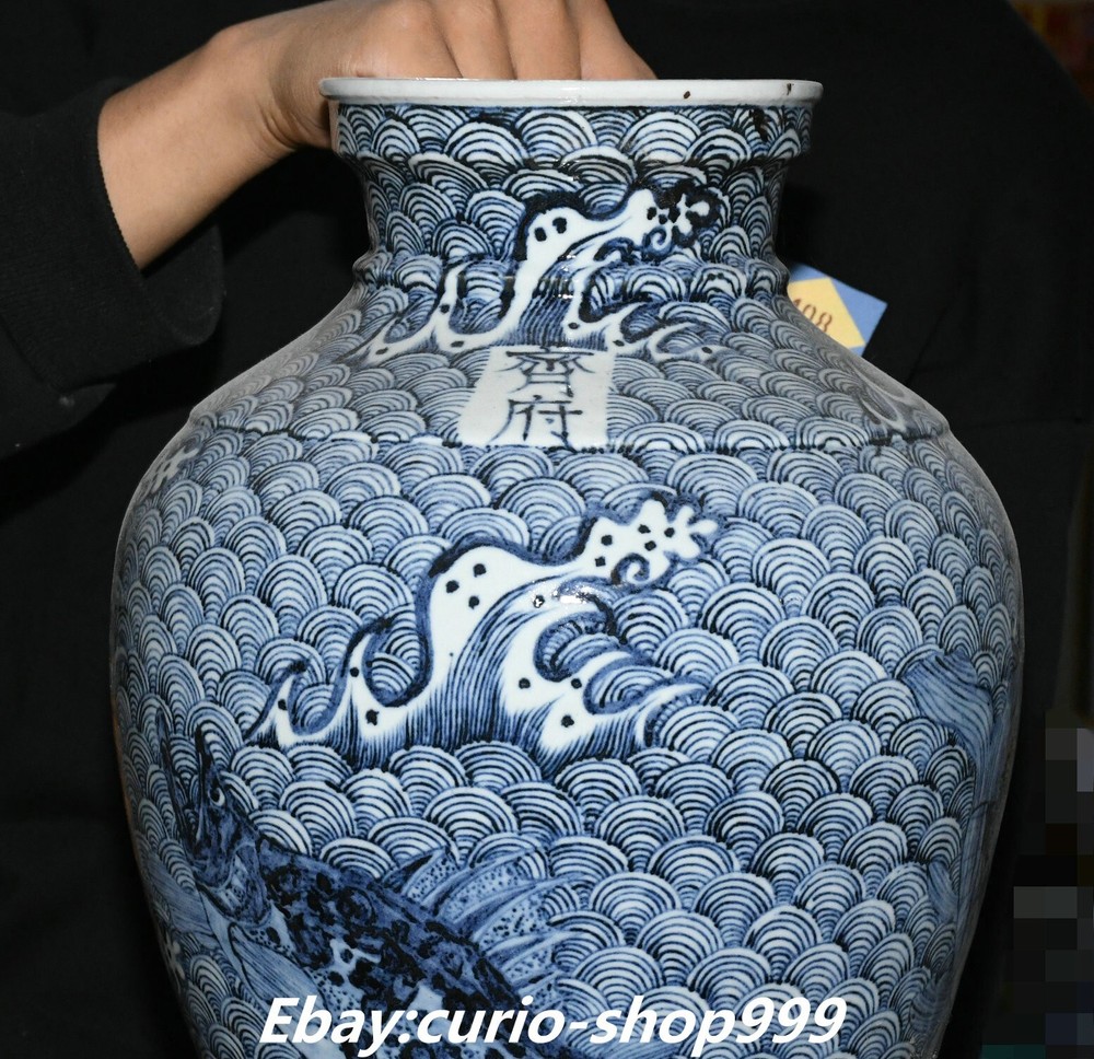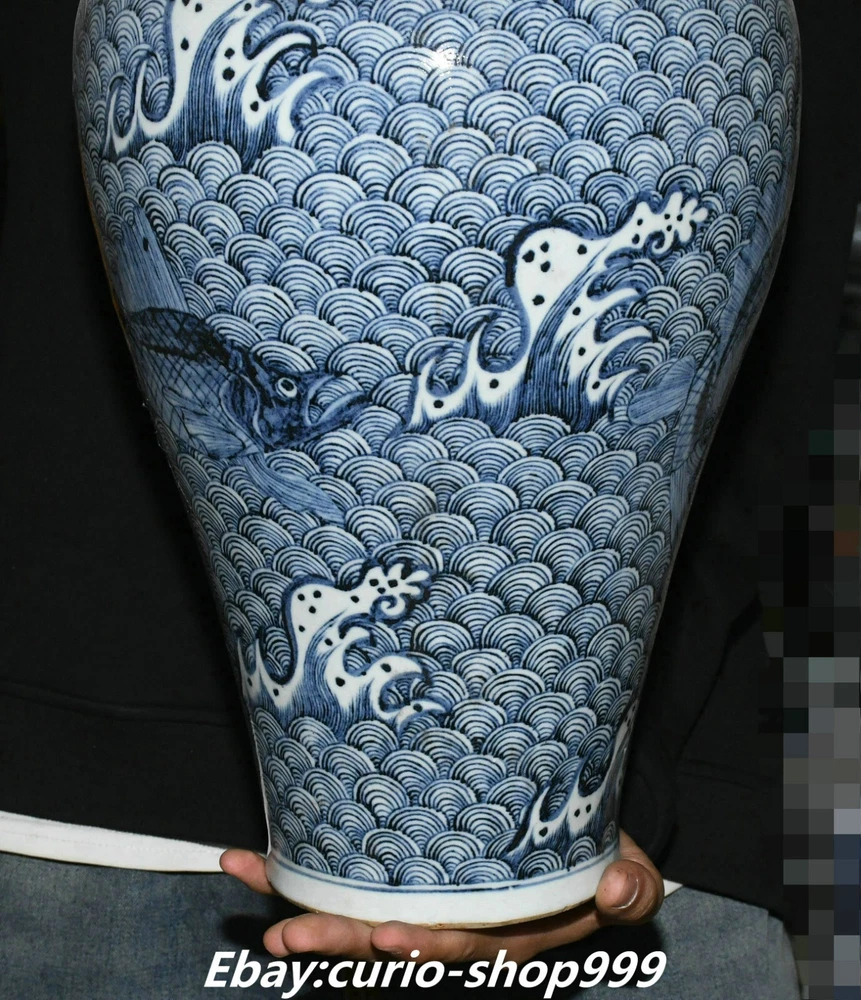 **** Welcome to our antique & Collectable Shop : Porcelain**** Description: Here is an 17.3" China Dynasty Blue White Porcelain Fish Goldfish Animal Flower Bottle Vase . It is in good condition, and was created by skilled craftsmen in traditional style with fine handcrafts.This is a great piece of valuable collection, a valuable personal alter or a very good present. the handwork is very fine with incredible detailling. Don't miss out this chance to get it.Wish you good luck! . Material : Blue White Porcelain Plating : Chinese Style : Same as photos showing Size : High 17.3 Long 9.4 Breadth 9.4 (inch) Condition Perfect Condition. Perfect, with no scratches, flaws or repairs. Weight: 7.6 KG----included the weight of packing materials Shipping cost to all over the world countries in Free Honored Customers: We are selling the collectibles products and crafts in Beijing ,China since 1993 and collected them all over the world all the time . In our shop the bronze sculpture, animal, vase, urn, flowerpot,Incense Burner.Table chair sets. Militaria goods. buddha statues, Bodhisattva Statues, Buddhist Ritual Items etc is our speciality .Many of the items we sell come from our own personal collection and have been in our family for a very long time .My great-grandfather was the first in this family to start collecting art & antiques when he still lived in San Xi and Tibet around 1922 ,some of the paintings he once collected can now be seen in museums around the globe.We won't make money from the shipping cost, if you dislike the item when you receive it,we can refund all of your money to you within thirty days. Please confidence for bidding . We recommend the combine shipping and offer you an big price discount if you order more items together ! 2024.10.08 四 号