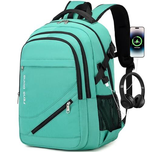 1. This backpack is a game-changer! Spacious enough for my 17.3" laptop plus all my daily essentials, yet still super comfortable to carry. Love the waterproof material and the extra pockets keep me organized. The USB charging port is a genius addition—no more fumbling for power banks. Perfect for college, work, or travel. Fast shipping and great seller communication make this a hassle-free purchase. The light green color looks sleek without being boring. Definitely worth every penny!