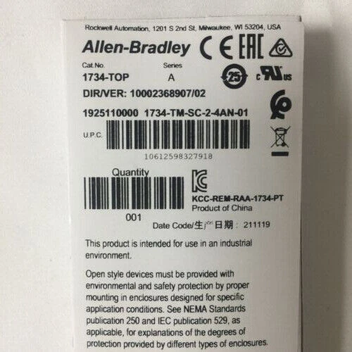 Store Categories Store Categories 755 AC Drive 753 AC Drive Servo Motor( VPL MPL MPM) 70/700/700S AC Drive Smart Motor Controller FOR MORE Other 1734-TOP AB POINT I/O Terminal Base 1 Piece Mounting 8 Screw Clamp Din-rail Product Description Brand Allen-Bradley MPN 1734-TOP Model 1734TOP More Items About Shipping Return Policy Warranty More Items As an independent distributor of NEW surplus industrial automation items. We buy and sell: Allen Bradley, Siemens, Schneider, Omron, Delta and any other listed manufacturers. All brands, logos, and trademarks identified herein are the property of their respective owners and used solely for identification purposes only. We have developed our own global sourcing relationships with End Users, independent distributors, auction houses, independent contractors and procure our equipment through such sources. All items we sell are 100% NEW. IF you need something that does not list on eBay, Please just leave us a message and we will try to find them by our own global supply chain. About Shipping 1.All USA warehouse parcels will be shipped within 1 work day by USPS Or UPS,Fedex according to your location and parcel weight. 2.IF buyer need them in a hurry, Please choose :UPS 2nd Day Air (USA warehouse ONLY)) and contact to pay the difference. Return Policy 1.If you receive a defective item which you want to return, please contact us when you receive the item. 2.All return items must be returned with its original packaging and accessories. If we confirm the damage happened during the shipment, we will bear the shipping cost for return. 3.We will refund the money to you when we get the return items. Or replace item for you free of charge. Warranty All items we sell are 100% NEW and we provide 1 year warranty after purchase. Copyright © 2023 Dianxiaomi