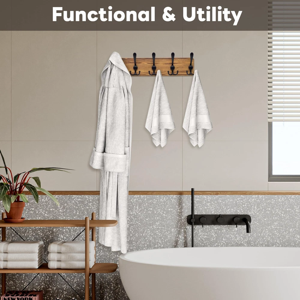 4-Pack Wood Wall Hooks for Entryway, Mudroom, or Bathroom - Wall Mount or Adhesive
