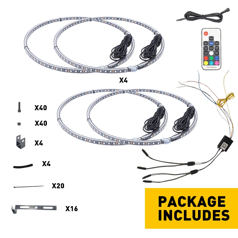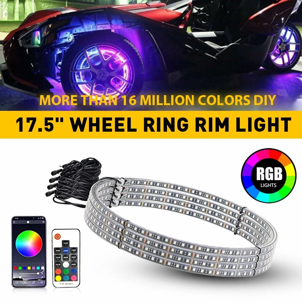 17.5" RGB & Chasing Flow Double Row LED Wheel Ring Rim Lights For Truck Car set