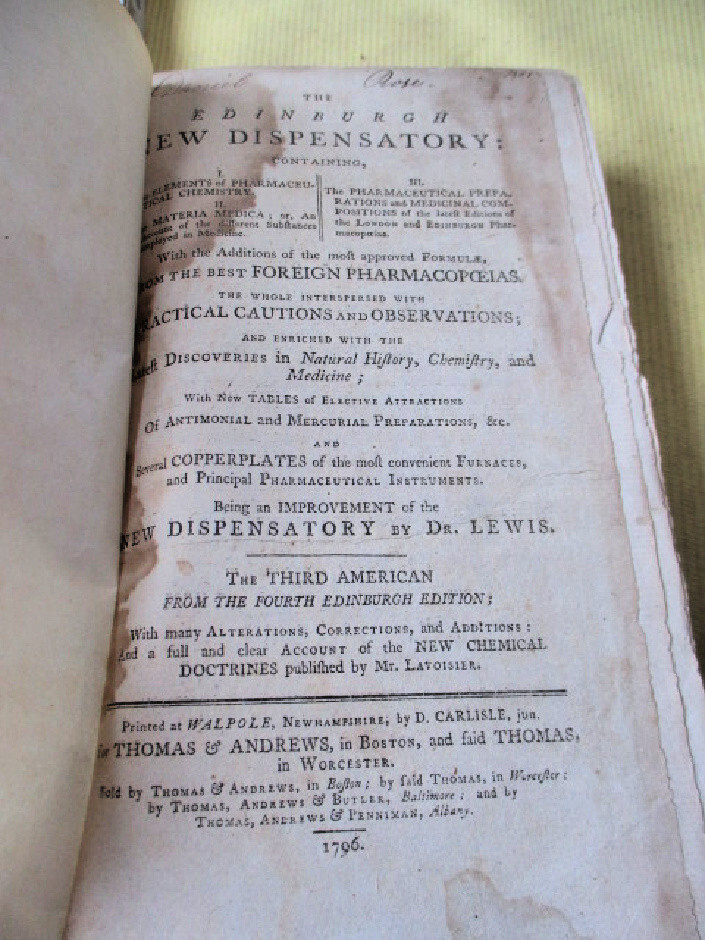 a1342. Printed Walpole, New Hampshire, 1796, by D.Carlisle for Thomas & Andrews, Boston. Third American Edition from Fourth Edinburgh Edition, Improved by Dr. Lewis. Octavo, 622 pages, Latin index, full calf covers, spine repaired with brown cloth. Good- condition. PLEASE NOTE: This book has rudimentary repairs......not professional, but with enough skill to make it serviceable. Do not hesitate to e-mail with any questions. As Always, Satisfaction Guaranteed! I expect to receive payment within 10 days, unless we have made other arrangements. Shipping will be USPS Media mail or Priority, if requested. I'm glad to combine multiple purchases in order to minimize shipping costs. I WILL SHIP INTERNATIONALLY, and I try to be as economical as possible with the shipping costs. RETURN POLICY: Satisfaction Guaranteed! Track Page Views With Auctiva's FREE Counter