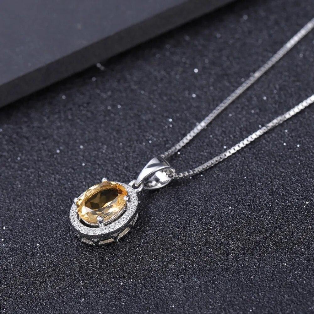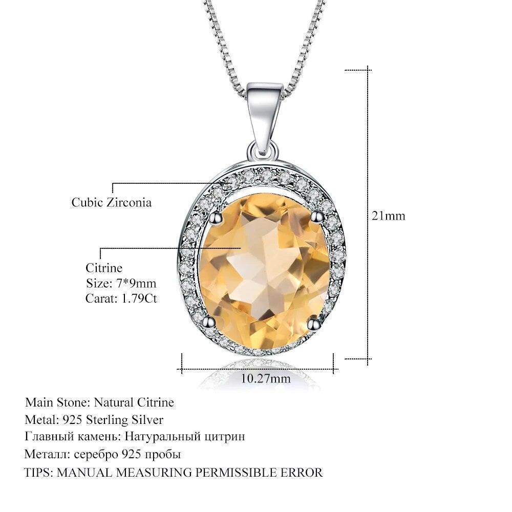 1.79Ct Natural Citrine Pendant Necklace in 925 Sterling Silver Birthstone Jewelry