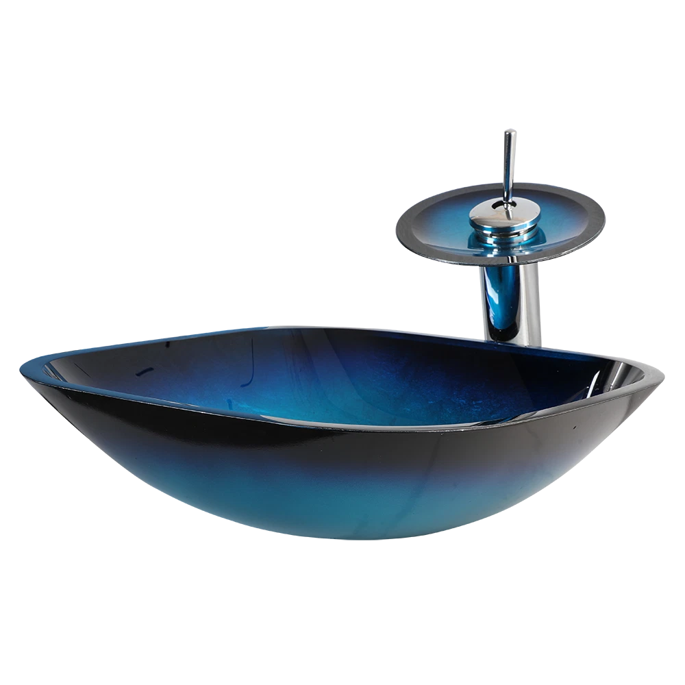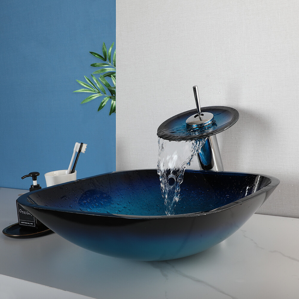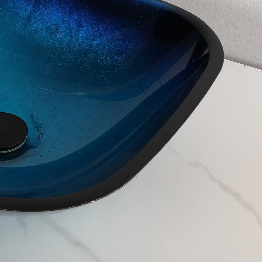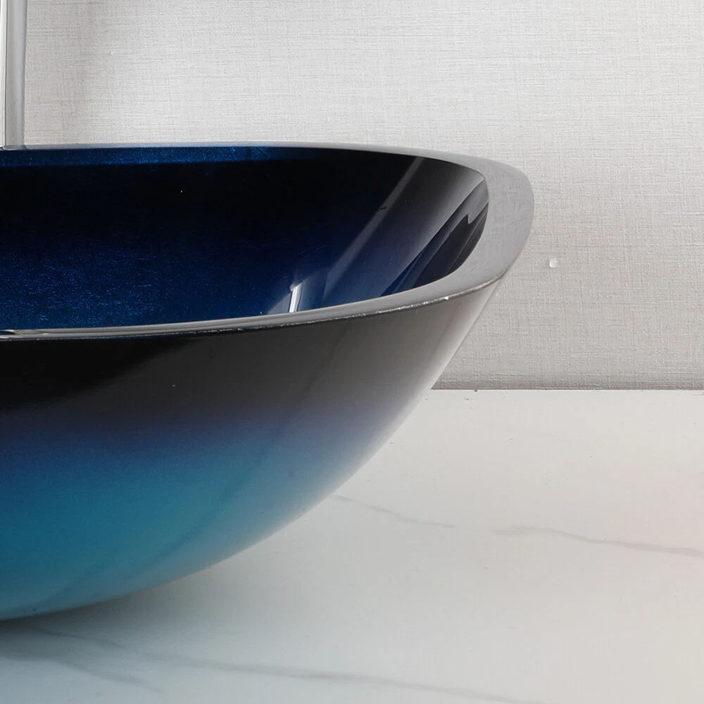 17-Inch Black or Blue Tempered Glass Vessel Sink with Faucet and Drain