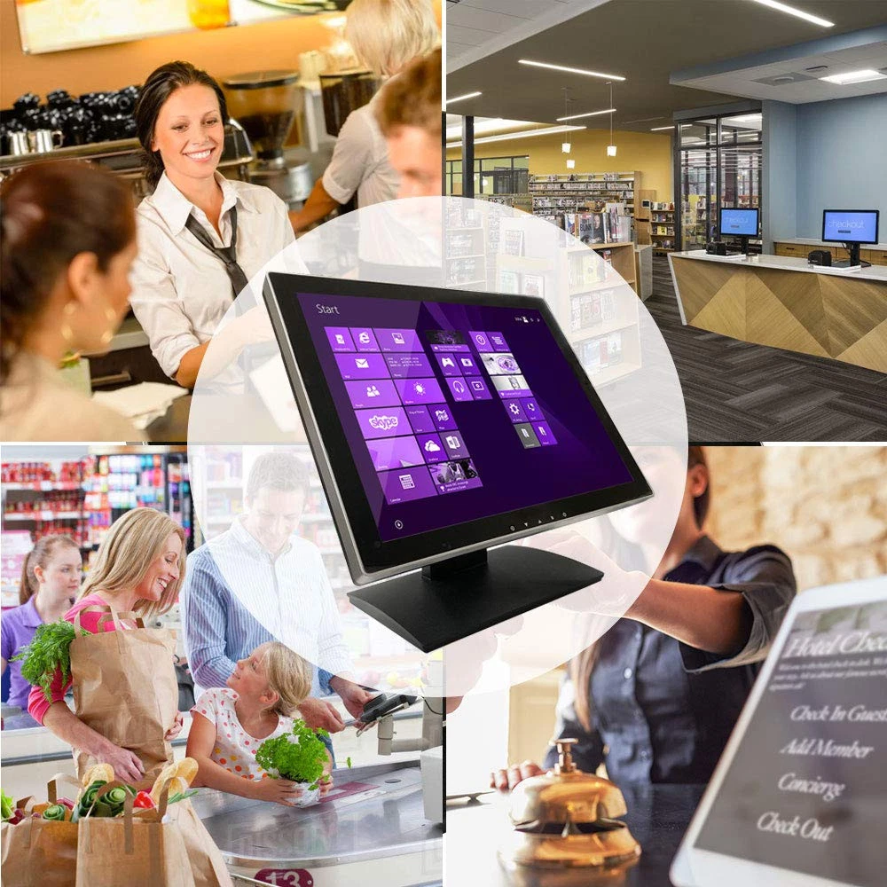 This 17" capacitive multi-touch POS touch screen monitor is engineered specifically for consumer and commercial customers who are looking for a rugged and durable touch screen monitor. The stylish true flat (no bezel) screen design provides an ascetically pleasing look and is also functional by preventing a buildup of debris around the monitor edges; this feature also makes the unit impervious to spills. Specifications: - Display Type: Touch Screen - Screen Size: 17 inch - Display Format: 4:3 Standard LED - Native Resolution: 1280 x 1024 - Contrast Ratio: 350:1 - Brightness: 300 cd/m2 - Video Response Time: 9 ms typical / Touch Response Time: 5.4 ms typical - Horizontal Viewing Angle: 170 degrees - Vertical Viewing Angle: 170 degrees - Power Consumption:30W - PowerSupply: 100-240 VAC / 50-60 Hz Package Contents: - Touch Screen LED Display - Power Adapter - Power Cord - VGA Signal Cable - USB Cable Please note the stand for this touch screen monitor is designed for normal touch operations, not for strong poking operations. ✔【 Durability and Reliability 】- This 17” Commercial-grade touchscreen monitor is built for continuous, long-term use in demanding environments, with rugged aluminum frame designs and reinforced screens to handle heavy use, unlike home-use monitors designed for occasional personal use. ✔【 Seamless flat touch screen design】- By eliminating crevices or edges where water or dust could accumulate or penetrate, this seamless flat capacitive touch screen remains functional even in challenging conditions. The seamless construction enhances resilience against water and dust ingress, ensuring durability and reliability in various environments. This feature is particularly valuable in industrial, outdoor, or high-traffic settings where exposure to moisture and debris is common. ✔【 10-point multi-touch capacitive touch screen 】- Recognize and respond up to ten simultaneous touch points with precision and accuracy. Allows for seamless multi-user interaction and supports a wide range of gestures, including pinch-to-zoom, swipe, and rotate, providing users with a highly intuitive and engaging experience. Whether used in interactive kiosks, educational settings, or collaborative workspaces, the 10-point multi-touch capability enhances productivity, creativity, and versatility by enabling seamless collaboration, efficient multitasking, and immersive interactive experiences. ✔【 Solid Metal Stand 】- The solid metal stand for a touch screen monitor offers exceptional stability, preventing tipping or wobbling in busy environments. Its sturdy construction securely holds the monitor in place, reducing the chance of damage and maintaining uninterrupted operation. This stability boosts user confidence and safety during touch screen interaction, ensuring a smooth and dependable user experience. ✔【No Need To Install Driver 】- This Plug & Play Capacitive Touch screen monitor is designed to effortlessly support multi-touch functionality when connected to Windows 8/10/11 systems. For Windows 7/XP/2000, it operates flawlessly with single-touch capability. Moreover, it is compatible and integrates seamlessly with a range of operating systems including Windows 7/10/XP
