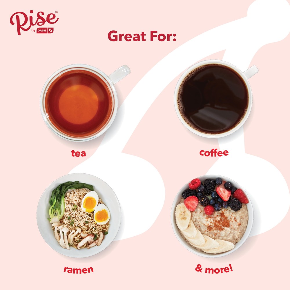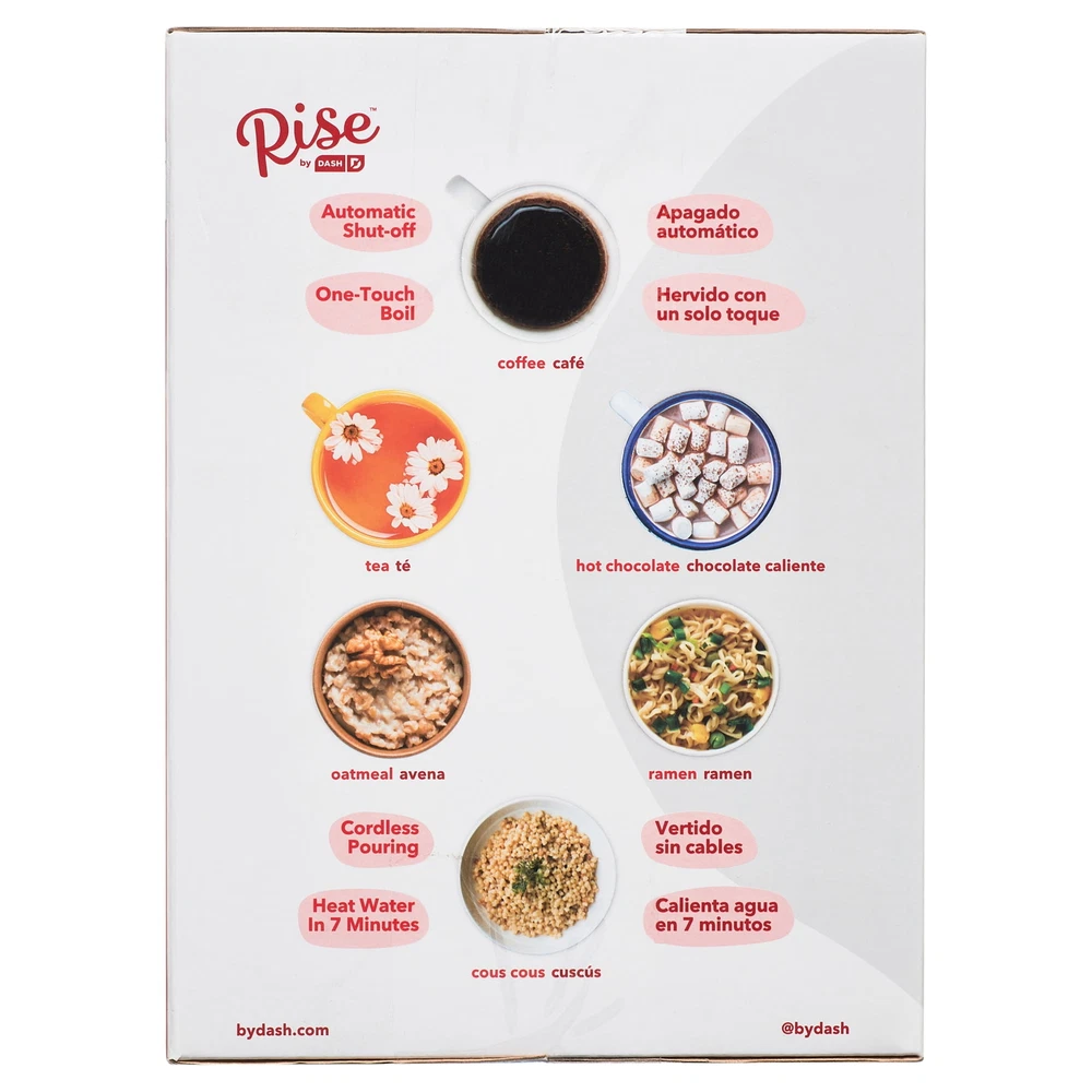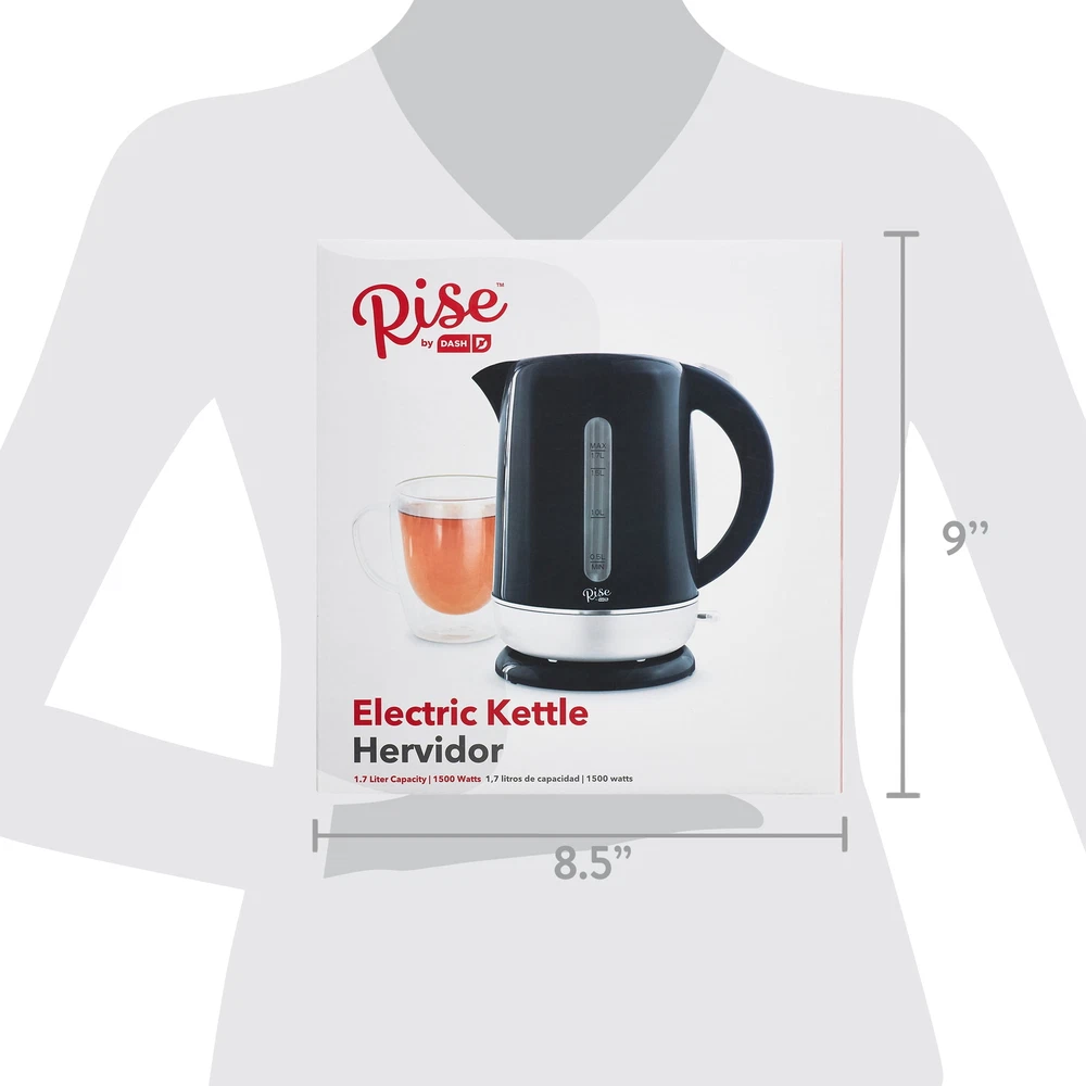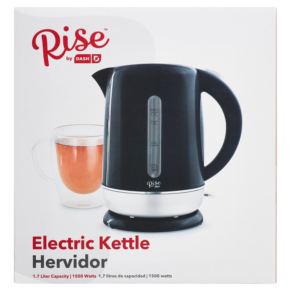 Prepare coffee, tea and more at the touch of a button using the Rise by Dash Electric Kettle in Black! The Kettle lifts right off its base and features a cool-touch handle for safe transport from kitchen to table, making it ideal for entertaining. Just press the button to start boiling, and boil dry protection will automatically shut the kettle down when it’s nearly empty. The Kettle makes it easy to prepare drinks as well as foods like oatmeal and ramen in a dash. On Mar 19, 2025 at 00:22:31 PDT, seller added the following information: