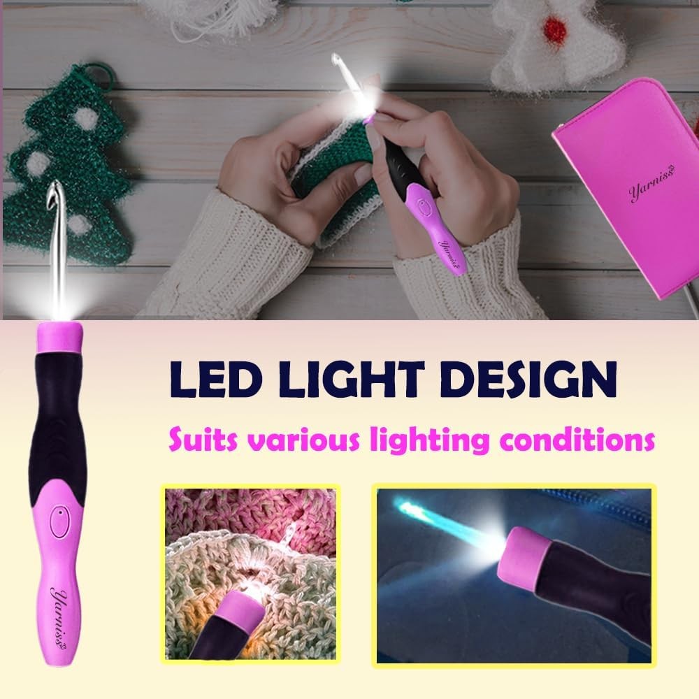 Absolutely love this set! The lighted hooks make crocheting in low light so much easier, and the rechargeable feature is super convenient. The variety of sizes covers all my project needs, and the case keeps everything organized. The interchangeable heads are a game-changer—no more fumbling with multiple hooks. The USB charging is fast, and the battery lasts a long time. Perfect for both beginners and experienced crafters. Highly recommend!