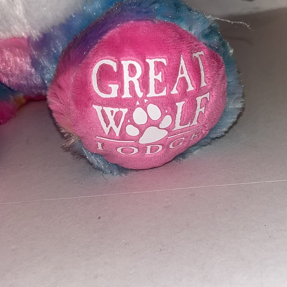 This adorable limited-edition plush is so soft and vibrant! The rainbow colors are eye-catching, and the quality is fantastic—perfect for collectors or kids who love cuddly friends. The exclusive Great Wolf Lodge design makes it extra special. A must-have for Build-A-Bear fans!
