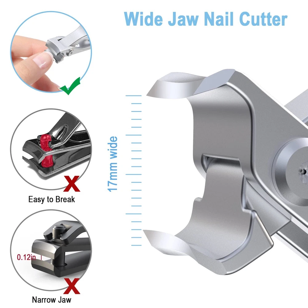 Nail Clippers, 17Mm Wide Jaw Opening Toenail Clippers for Seniors Thick Toenails 【Nail Clippers Set】Our Glamfields Nail Clipper Set contains toenail clippers and a nano glass nail file. Nail Clippers is commonly used for toenail clippers for seniors thick toenails, thick nail clippers for men, fingernail clippers for men & women, even be used for pet nail clippers for small animals. The nano nail file can not only be used as an ordinary nail file, but also work as a harmless nail tool to polish your nails, makes your nail shine like glass, just like you painted nail polish. 【Wide Jaw Toenail Clipper for Thick Nails, Ingrown Toenail, Hard Nail】Compare with regular fingernail clippers, our big nail nipper with wide jaw can open up to 17 mm/ 0.67 inch, 3.3 inch long handle, super sharp blade, which is great for thick/ingrown toenails due to tough、paronychia or other health concerns.This big toe nail clippers adult can assist with ingrown toenail treatment and other nail problems. 【Heavy Duty Nail Clippers】Made of premium Zinc alloy, with super sharp blades, which is a perfect nail tools to cut tough or trickier nails easily and leave a smooth nail edge. The included nano glass nail file helps with the trimming. It is suitable for hard nails for men or women, special for seniors. Specialized design for good grip and non-slip action.Please be careful when use the nail trimmer. 【Easy To Use】 The wide easy grip handles are ergonomically designed to provide you safe security and comfortable handling while trimming. Our toe nail clippers is perfect for those people who with less flexibility limited dexterity or little strength. Of course suit for everyday use! 【After-Sale Service】This nail clipper set is including 1x nail clipper for thick nail, 1x nano glass nail file, 1x leather case. We provided a 12-month warranty and 90 days refund. If the nail cutter you receive does not meet our standard or if you are not satisfied with our toenail clippers, simply contact us for a replacement or a refund. Shipping We offer FREE shipping on all orders! We ship within Three business days of payment, usually sooner. We use a selection of shipping services such as UPS, FedEx, USPS etc. We only ship to the lower 48 states, no APO/FPO addresses or PO Boxes allowed. Local pickups and combined shipping options are not provided at this time. Return You can return a product for up to 30 days from the date you purchased it. Any product you return must be in the same condition you received it and in the original packaging. Please keep the receipt. Payment We accept payment by any of the following methods: PayPal Please pay as soon as possible after winning an auction, as that will allow us to post your item to you sooner! Feedback Customer satisfaction is very important to us. If you have any problem with your order, please contact us and we will do our best to make you satisfied. Contact Us If you have any queries, please contact us via ebay. We usually respond within 24 hours on weekdays. Please visit our eBay store to check out other items for sale! Thank you for shopping at our store.