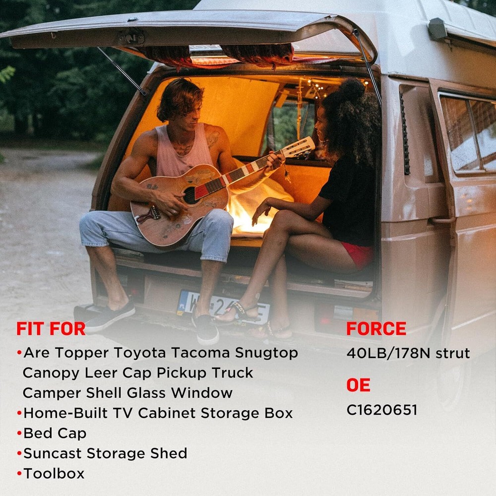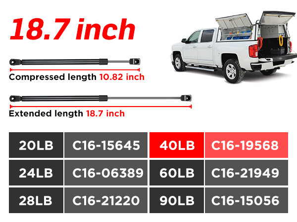 Camper Shell Replacement Part: 18 inch gas struts are used in a wide range of applications.They can work for Leer camper shell, topper rear windows, topper rear door, truck canopy, truck cap, toolbox cover lids. C16-20651 Gas Struts Specifications: 18.7 inch 40lb 178N gas shocks. Extended Length 18.70 inch.Compressed Length 10.82 inch. The 18.7 inch gas struts connector is 10mm Nylon Socket type. End fitting 10mm ball stud 18.7 Inch Strut Interchange Number: Find the below Interchange number on your OEM gas shock cylinders for a exact match: C16-20651 SE187P40 SE187P40S10 before purchasing.If you are not sure, please contact us directly C16-20651 Struts Package Content: Package contains 18.7 inch gas struts*2. Installation with a flat screwdriver, no special tools required. Easy to install 2x C16-20651 18.7 Inch 40lb/178N Gas Struts Shocks for Leer Camper Shell Topper About this item Camper Shell Replacement Part: 18 inch gas struts are used in a wide range of applications.They can work for Leer camper shell, topper rear windows, topper rear door, truck canopy, truck cap, toolbox cover lids. C16-20651 Gas Struts Specifications: 18.7 inch 40lb 178N gas shocks. Extended Length 18.70 inch.Compressed Length 10.82 inch. The 18.7 inch gas struts connector is 10mm Nylon Socket type. End fitting 10mm ball stud 18.7 Inch Strut Interchange Number: Find the below Interchange number on your OEM gas shock cylinders for a exact match: C16-20651 SE187P40 SE187P40S10 before purchasing.If you are not sure, please contact us directly C16-20651 Struts Package Content: Package contains 18.7 inch gas struts*2. Installation with a flat screwdriver, no special tools required. Easy to install Product Description Payment Delivery details Terms of sales About us Contact us Payment 1.We only accept PayPal. PayPal is the only online payment method we accept. Please make sure you have a valid/confirmed PayPal account prior bidding. 2.All Paypal Payments must be Confirmed. Payment must be made within 48hrs of the auction end time. Non-Paying bidders will be reported. 3.When you get your package,maybe you will pay some charges, it's taxes for local customs,not pay to us, and the fees are depends on the customs, all buyer are same. Delivery details 1.Items will be shipped within 2 business days after payment is received. 2.We ship to your eBay address. Please make sure your eBay address is correct. Buyer takes responsibility if eBay address is wrong. 3.Import duties, taxes and charges are not included in the item price or shipping charges. Please check with your country customs office for these additional charges. 4.We shipping using UPS or USPS from our nearest warehouse to you. Tracking numbers will be emailed upon shipment. Terms of sales 1.Please feel free to email us if you have any question. 2.We appreciate you contact us via eBay message when you are not satisfied rather than open case or leave negative feedback directly. We'll try our best to solve the issue. 3.Refund will be issued once we receive your returned items. Buyer is responsible for all return shipping charges. 4.Please contact us for return process before you return the item. 5.All items for exchange or refund must be returned in "as new" condition. About us We are the responsible seller ,always provide high-quality products and best service .If you have any questions, please contact us, and will try our best to help you. Please contact us by eBay Message, and we will reply you within 24 hours. Thank you very much! Contact us We are the professional auto parts manufacturer , and provide line lock, AN hose end fittings , fuel line , fuel filter , fuel regulator , exhaust cutout , exhaust tips , exhaust muffler and so on .The quality of the product to be secured. If you have any questions or any needs , please contact us , and will try our best to help you.