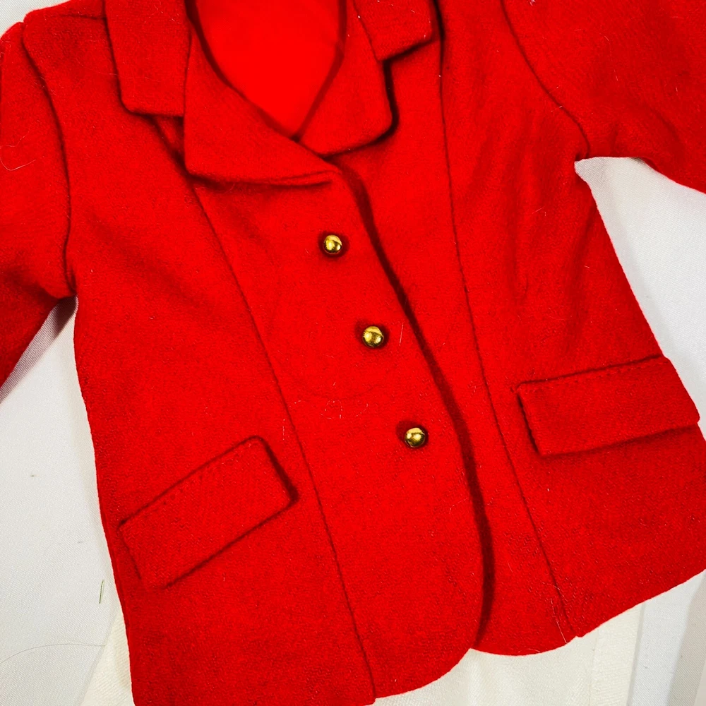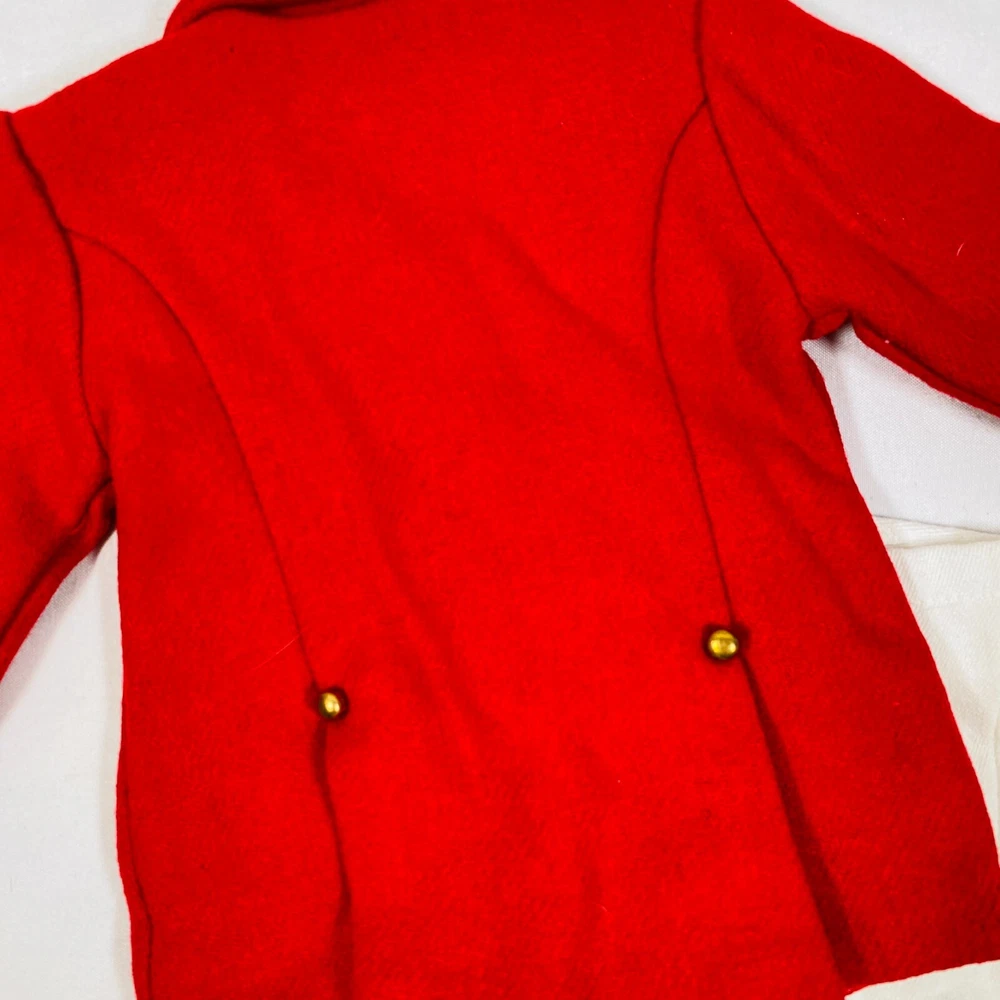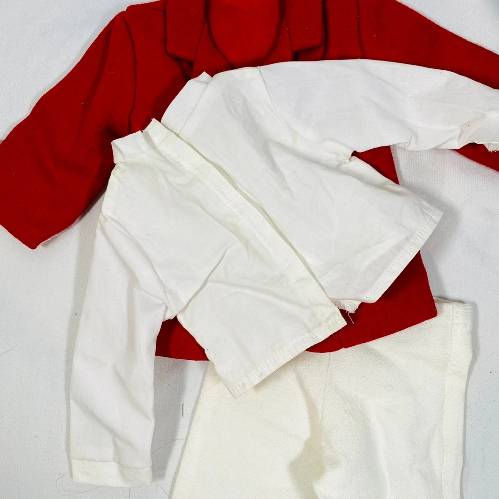 18" American Girl Doll 2004 JLY "Equestrian Outfit", Complete Set. Includes Red Riding Jacket, White Blouse, White Breeches/Pants, Black Riding Helmet, and Tall Patent Leather Boots. In gently played with condition, only flaws noted are one tiny mark on blouse and some kind of blue smudges on pants, both pictured, and may wash out. Please see all pictures for exact cosmetic condition and other details, and ask any questions before purchasing. We are a husband and wife team with a growing family, and greatly appreciate your support of our small business. Please browse our eBay store for a variety of other American Girl items. We hope you enjoy this set!