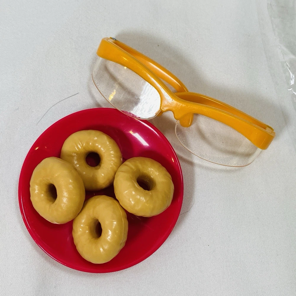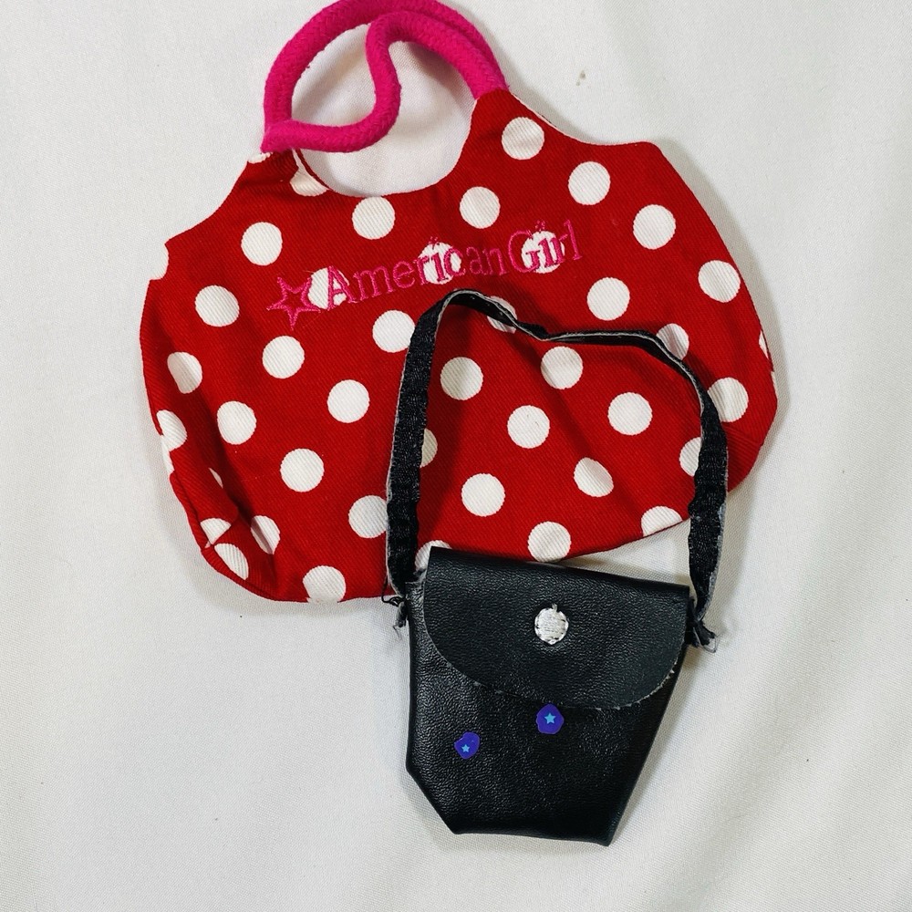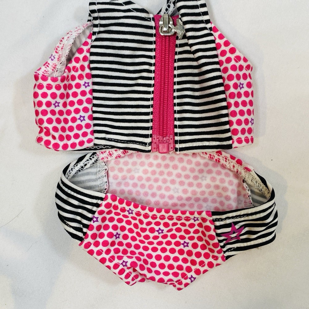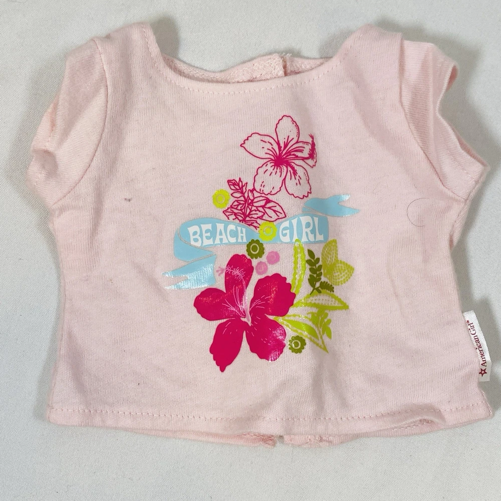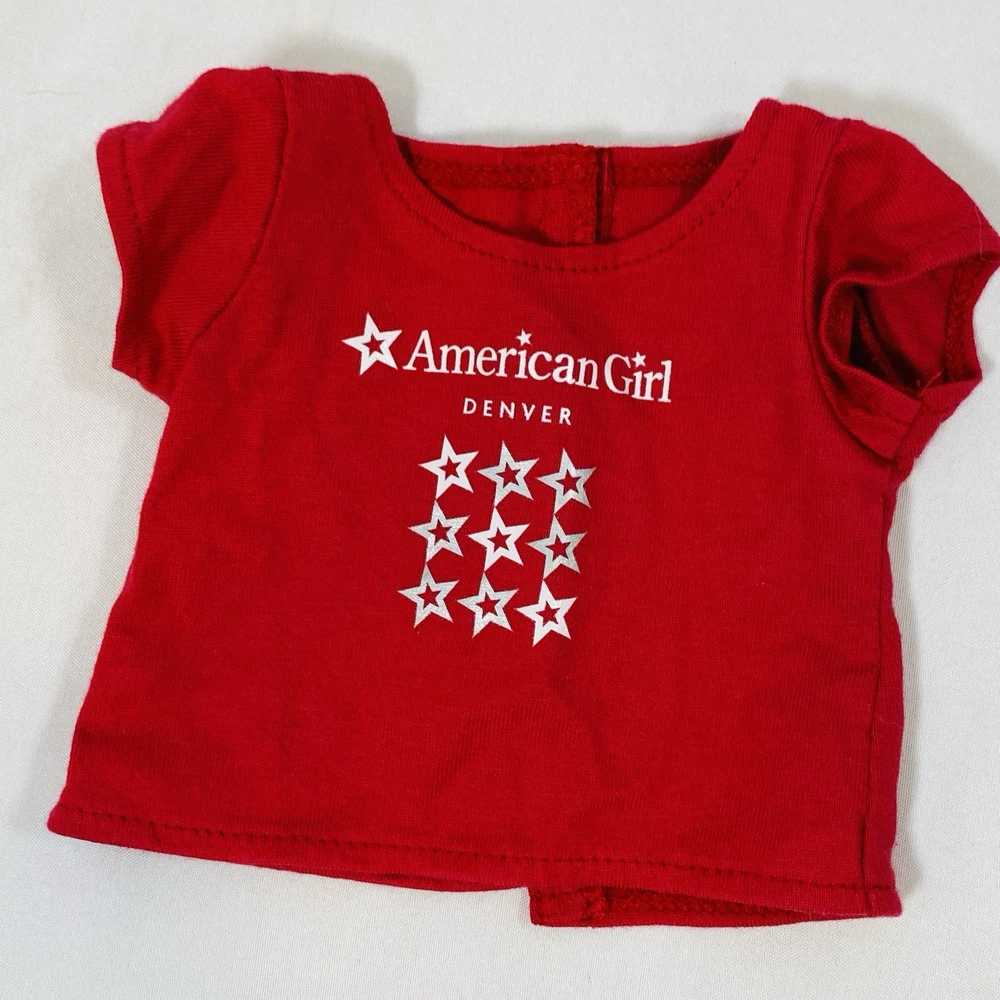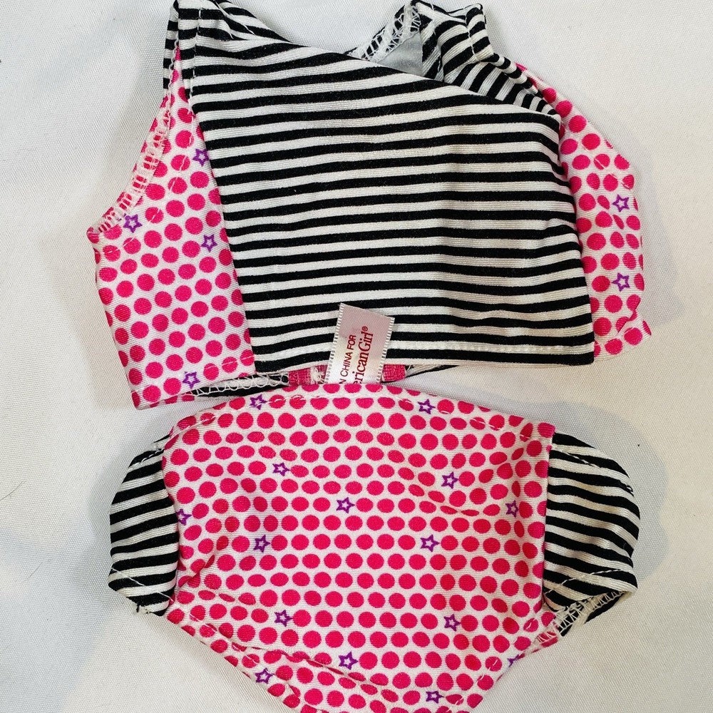 18" American Girl Doll Assorted Accessories. Set includes the following: Red "Denver" Star T-Shirt Pink "Beach Girl" Tee Red Polka Dot Tote Striped 2-piece Tankini Swimsuit Place w/ 4 Doughnuts Science Lab Glasses Non-AG Black Purse (everything else is genuine AG) In excellent pre-owned condition, no stains or rips. Please see all pictures for exact cosmetic condition and other details, and ask any questions before purchasing. We are a husband and wife team with a growing family, and greatly appreciate your support of our small business. Please browse our eBay store for a variety of other American Girl items. We hope you enjoy this set!