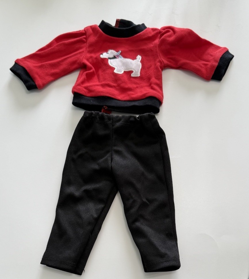 18" American Girl Doll Outfit - Red Dog Shirt & Black Pants with Hanger