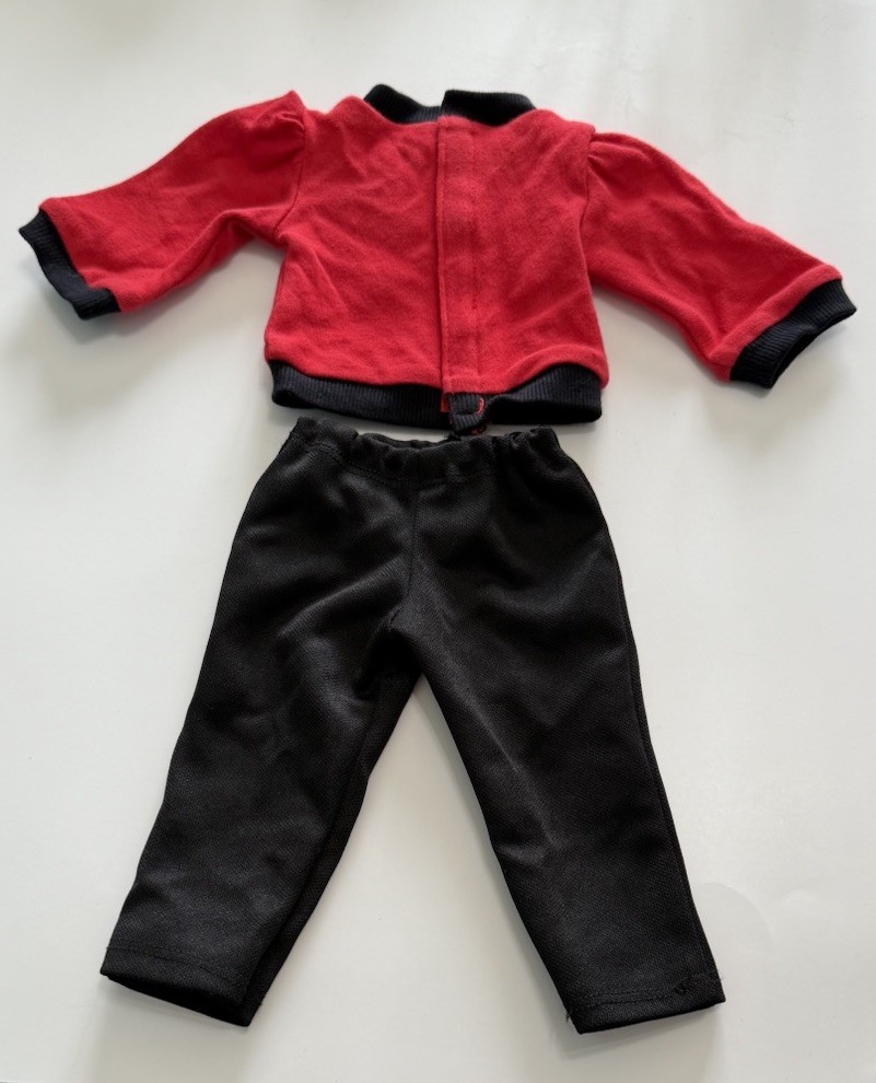 Item Height: 18 in Brand: The Doll Clothes Store Color: Red Number of Pieces: 3 Clothing Type: Pants, Top Material: Cloth Clothing Style: Everyday Doll Type: Play Doll Type: Clothing Set Includes: Pants, Top, Hanger Doll Gender: Girl Doll Compatible Doll Size: 18 in