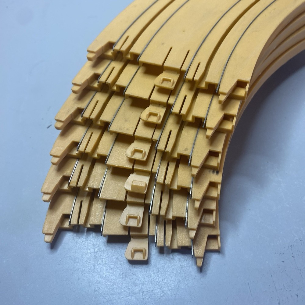 As shown. Full guarantee. No broken clips or tabs.A note about color: I am 95 percent sure this color is officially called sand. To me it looks orange. I've seen professionals call it sand or tan. Non professionals have called it sand, dirt, tan, beige, yellow, or orange. There is a Tyco track color that is less orange and more tan-looking. If you are specifically looking to match a tan-looking track, this might not be the color you're looking for.