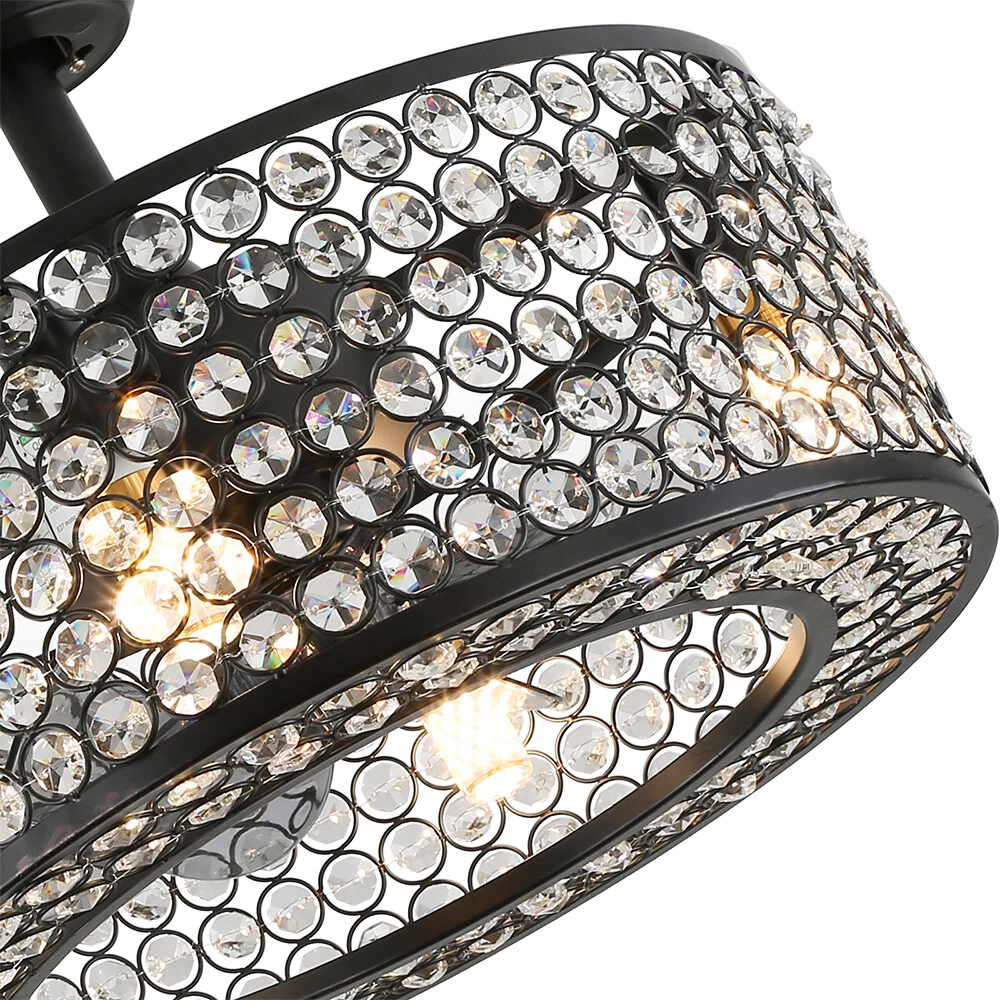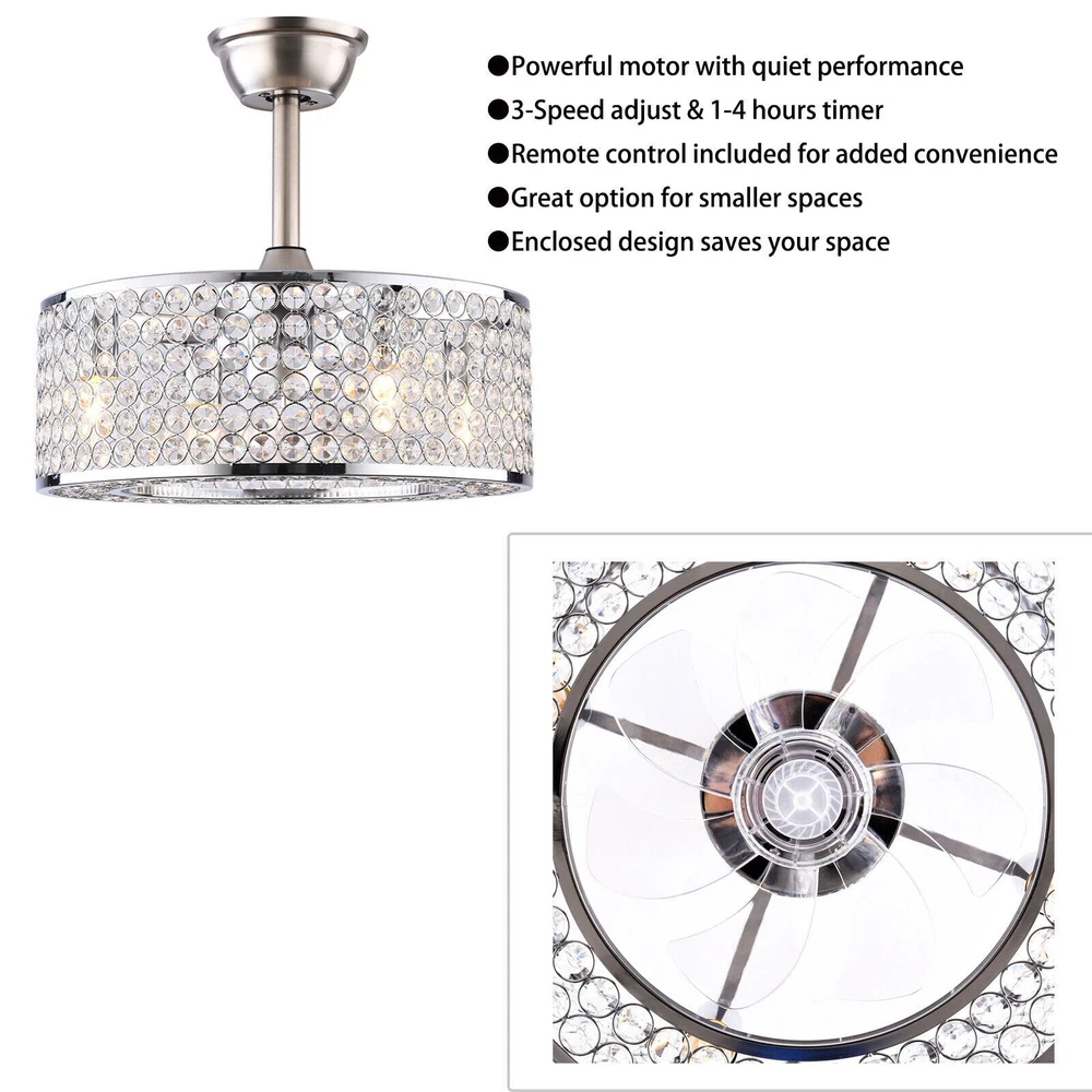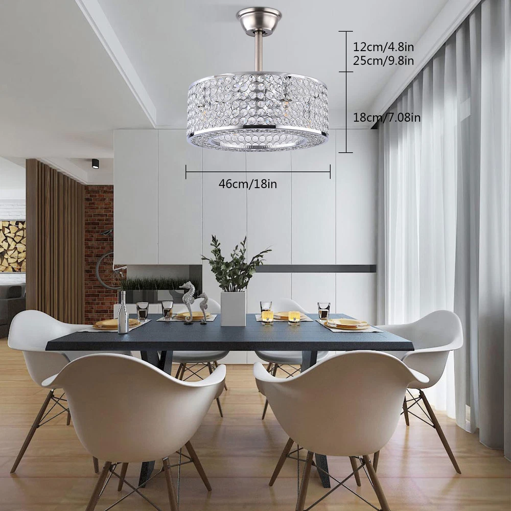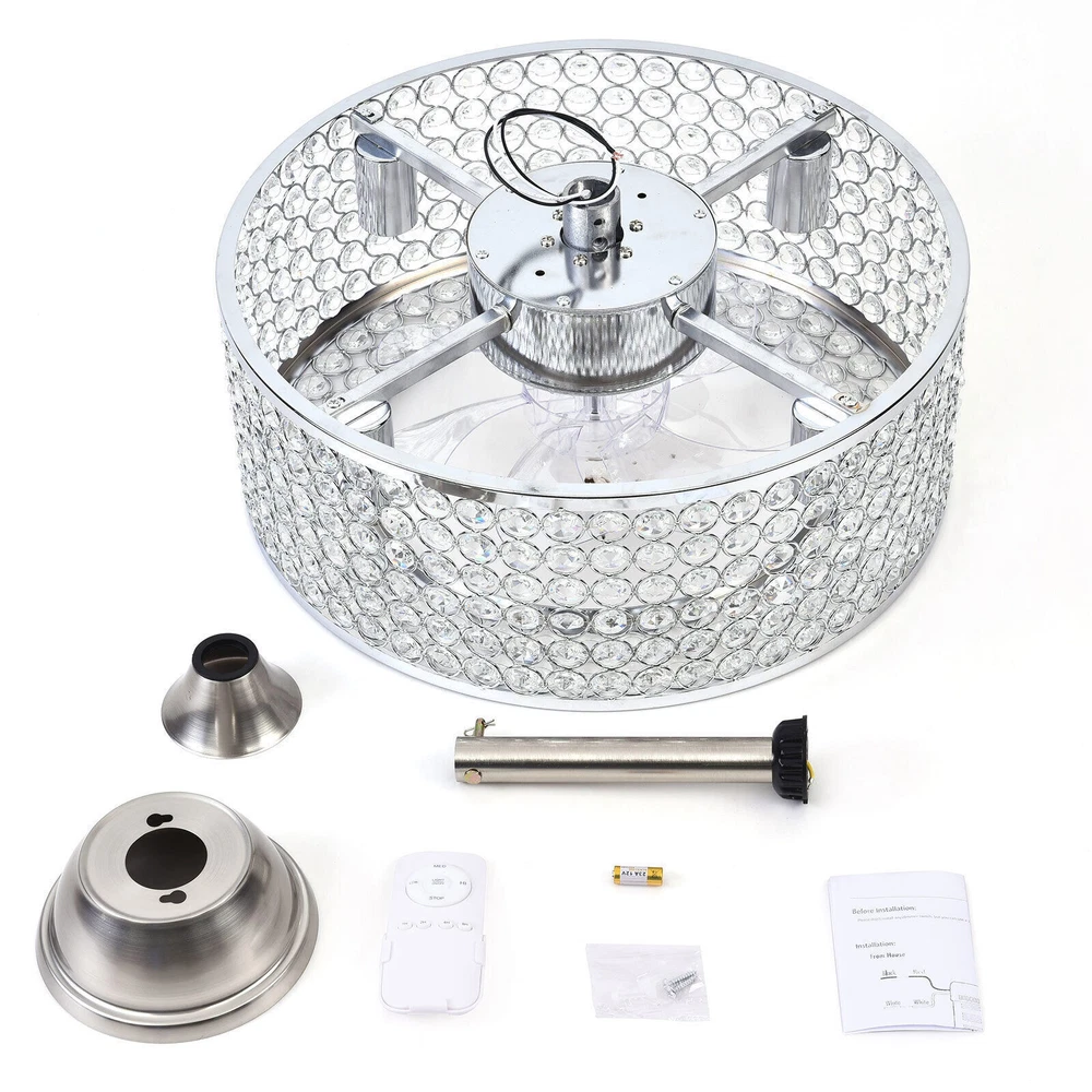 18" Crystal LED Chandelier Bladeless Caged Ceiling Fan Light 3 Speeds Remote NEW 18" Flush Mount Ceiling Fan Light Bladeless Crystal LED Chandelier + Remote Black ✦Dimensions Fixture Height: 7.87" (20 cm) Fixture Width: 18" (45cm) ✦Bulb Information Bulb requirements: use (4) E26bulbs, maximum 40watts, options include incandescent, fluorescent, LED, halogen, etc. (bulbs are not included) Wattage: Max 40W Voltage: AC110-120V Remote control: yes ✦Material and Colour Material: Retro metal Package Included 1 *Fan Light (Bulbs Not Included) 1*Down rods (20CM) 1 * Accessories package 1 * User Manual Silver ✦ Dimensions Fixture Height: 7.08" (18 cm) Fixture Width: 18" (46cm) ✦Bulb Information Bulb requirements: use (4) E26bulbs, maximum 60watts, options include incandescent, fluorescent, LED, halogen, etc. (bulbs are not included) Wattage: Max 60W Voltage: AC110-120V Remote control: yes ✦Material and Colour Material: Nickel-plated metal +crystal ✦ Package Included 1 *Fan Light (Bulbs Not Included) 2*Down rods (12CM & 25CM) 1 * Accessories package 1 * User Manual Description Payment Delivery details Terms of sales About us Contact us Payment We accept ebay payment 。 Fees such as import duties, taxes are not included in the item price or shipping costs. These charges are the buyer's responsibility. Delivery details Shipping: 2-9 working days to: USA Terms of sales We maintain high standards of excellence and strive for hundred percent customer satisfaction. Feedback is very important to us. We hope that you contact us immediately before you give neutral or negative feedback, so that we can address your concerns. It is impossible to address issues if we do not know about them! About us Your satis faction is our ultimate goal. We work hard to earn your trust and future business. Our certified technicians have tested each item before shipping. The unit comes with 1 year limited warranty on all manufacturing defects. a) If you receive a defective item, you may return it or ask for a discount. Please contact us within 14 days after you receive the package. b) What you returned must be intact and in its original packaging as re? u. Customer is responsible for shipping costs of the returned item. c) We will cover the cost of shipping back t with the shipping rate indicated in the registration page. We will send you a new unit or refund the full payment you paid. Thank you. Contact us Business Hour Business Hour: Monday To Friday: 8:30 AM to 5:00 PM (Beijing China time) Due to time zones, our reply to your questions may not be immediately. But within above working time, we will reply your email within 24 hours. If it's non-workdays, please kindly be patient and wait till Monday. Please contact us with ebay message. Please feel free to contact us if you have any questions. Monday To Friday: 8:30 AM to 5:00 PM (Beijing China time) Due to time zones, our reply to your questions may not be immediately. But within above working time, we will reply your email within 24 hours. If it's non-workdays, please kindly be patient and wait till Monday. Please contact us with ebay message. Please feel free to contact us if you have any questions. Warranty 3 Years ❤Highlights❤ High Quality 🔥Feature🔥 Long Service Life ✨✨ Manufacturer Warranty 3 Years !Features Compact Design,Unique Appearance,High quality Characteristic Convenient Use,Easy Operation,Easy installation Features Durable Warranty. 3 Years *Feature* Creative Design,Durable Material,Beautiful Highlights Compact Design,Unique Appearance,high reliability Features: High quality W/ warranty! Light Color Warm White Power Source Corded MPN Does not apply Number of Speeds 3 Design Lantern Control Style Remote Control Sensor Type None Energy Star 4 Stars Voltage AC110-120V Style Modern Personalized Yes LED String/Strip Type No Room Attic, Bedroom, Dining Room, Entryway, Hallway, Home Office/Study, Kitchen, Living Room, Porch, Bar, Hotel, gallery, farmhouse, foyer, exhibition room, coffee shop Finish Retro Metal Lighting Technology LED Number of Settings 3 Item Diameter 18 in Material Metal Installation Area Indoor Brand Unbranded Mounting Ceiling Mounted Blade Color Clear Type Ceiling Fan Fan Width 18 in Number of Blades 7 Power Consumption Max 40W/60W Country/Region of Manufacture China Manufacturer / EC Range A+++ - G UPC Does not apply