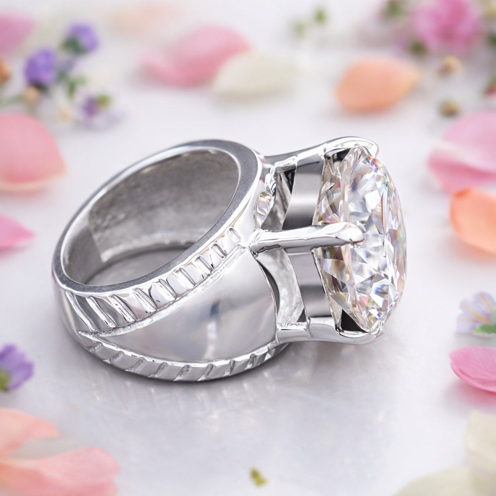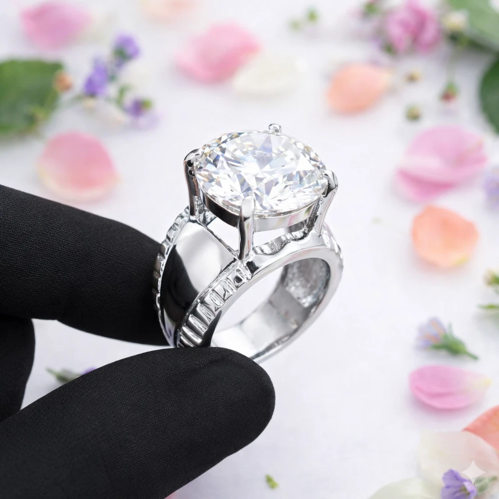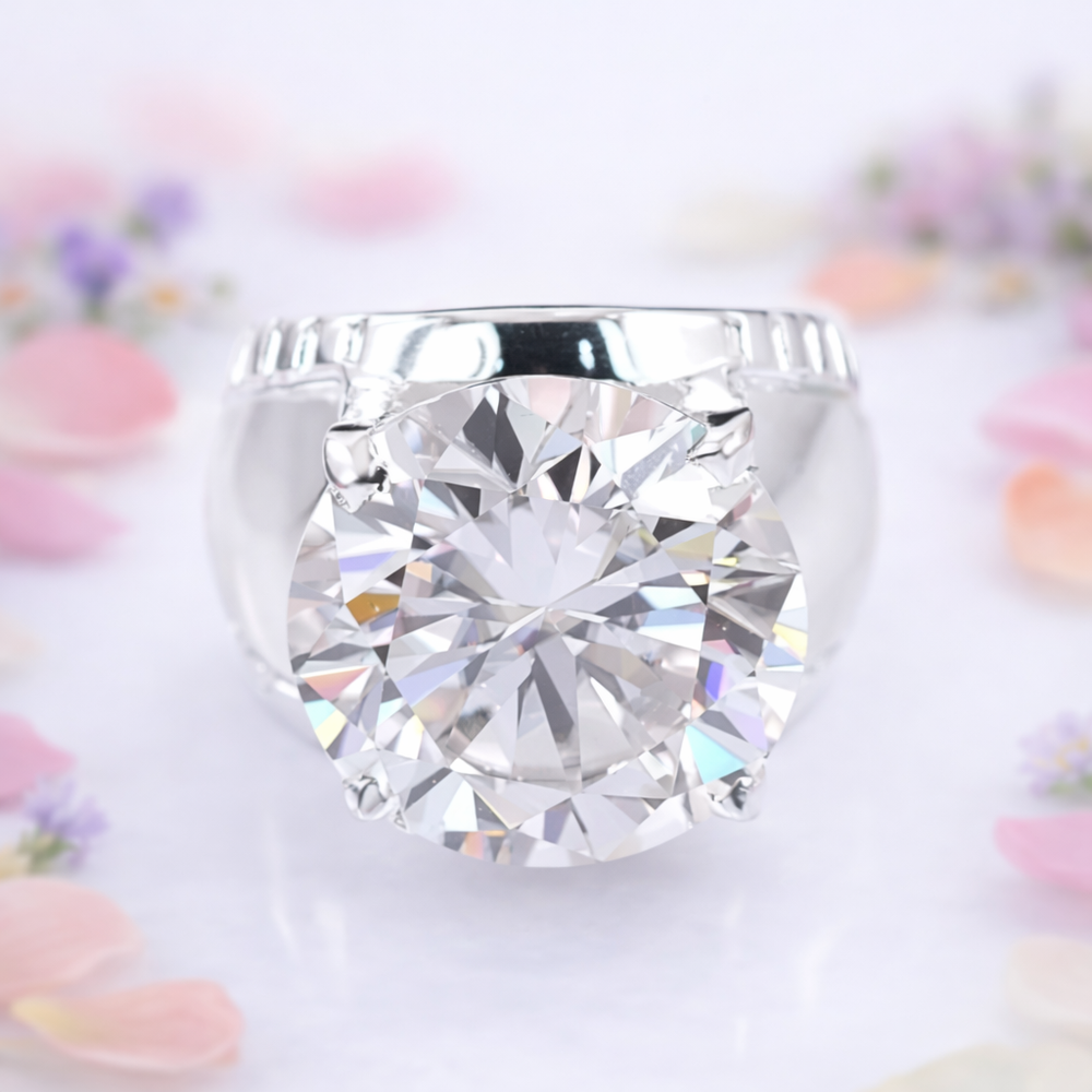 Treated White Diamond • Luxury Grade R ound Cut Solitaire Statement Ring Stamped Solid 925 Sterling Silver - White Finish Specifications Total Carat Weight 18 CT Size 17 X 17 MM Shape / Cut Round Color White Metal Stamped Solid 925 Sterling Silver (White Finish) Treatment HPHT Clarity VVS1 Origin Diamond Brazil Ring Size (US) 10 (Default) Diamond Geological Properties These are genuine Colored Diamonds found naturally mines mainly from Brazil. They are more porous than White Diamonds and are found in the upper layers of the ground relative to the White Diamonds that are mined deep. Some scientists are of the opinion that their origin maybe a Meteor that impacted earth Billions of years ago. What is their nature? Colored Diamonds are not found in the state as they are sold. They are made from earth mined rough rock found in mines of Brazil. The Rock color varies from Light Blue, Dark Blue, Champagne, Pink, Green etc. What is the treatment process? To bring out its true color it needs to be treated. The process is a natural one employing gentle heating a high-pressure environment (HPHT) which gradually brings out the true color of the Diamond. Are any artificial colors or chemicals added? There are no artificial colors or chemicals included in the process. They are not irradiated. Does it alter the composition? The process may or may not alter the composition. It remains a true Diamond nevertheless. Once our diamonds are heat-treated, it may move the molecules. This causes them to not always test properly with a hand tester. If a hand tester is used, sometimes they test as diamonds and sometimes they test as Moissanite. But they are genuine earth mined diamonds, not Moissanite or CZ. If you use a jeweler's loop you can see this by their molecular composition. How does it differ from a Moissanite? A Moissanite is man-made whereas our Diamonds are earth-mined. A Moissanite will lose its shine and wither away in a short period whereas a Diamond will remain as they are forever. What if I have doubts about their authenticity? You can always message us in case you still want any more details or clarifications. Once purchased we will understand that you have read and understood the details about these Diamonds and thus, we will be unable to accept returns for this reason. What Guarantee do you offer? We offer full100% Money Back Guaranteed in case of any manufacturing defect. Please also refer to the Refund Policy as mentioned our item listing. Mineral Information - Diamond Chemical Composition - Carbon (C) Color - D to J (Colorless to Near-Colorless) Hardness - 10 (Mohs Scale) Specific Gravity - 3.52 Refractive Index - 2.417 Shipping & Handling Handling Time - Jewelry items can take up to 10-12 business days to process to take care of ring sizing if any, polishing, finishing, packing and handling, certification, documentation etc. USA Shipping - Shipping is by UPS/SPEEDPOST/FEDEX or similar shipping agencies to reach you in 9-15 business days after processing the order. Tracking is provided. International Shipping - Estimated 09–15 business days Payments We accept payments exclusively through Payoneer . Orders are processed only after full payment is deposited and cleared. Please ensure your Payoneer account is active and funded before purchasing. Return Policy Return Period - 30 days from delivery Condition - Must be unused, undamaged & in original packaging Refund Time - Issued within 07-15 business days after inspection Return Shipping - Buyer pays return shipping Duties & Taxes Import duties, VAT, customs fees, or any destination country taxes are the buyer’s responsibility. Please check your country’s rules before purchase. Why Buy From Earthica Natural gemstones • Transparent grading • Custom jewelry options 5★ Rated Seller Insured Shipping Expert Gemologist Support Message Us for Custom Jewelry © 2025 Earthica . All Rights Reserved. All gemstone images, product descriptions, and layout design are intellectual property of Earthica. Unauthorized copying or redistribution is strictly prohibited under international copyright law.