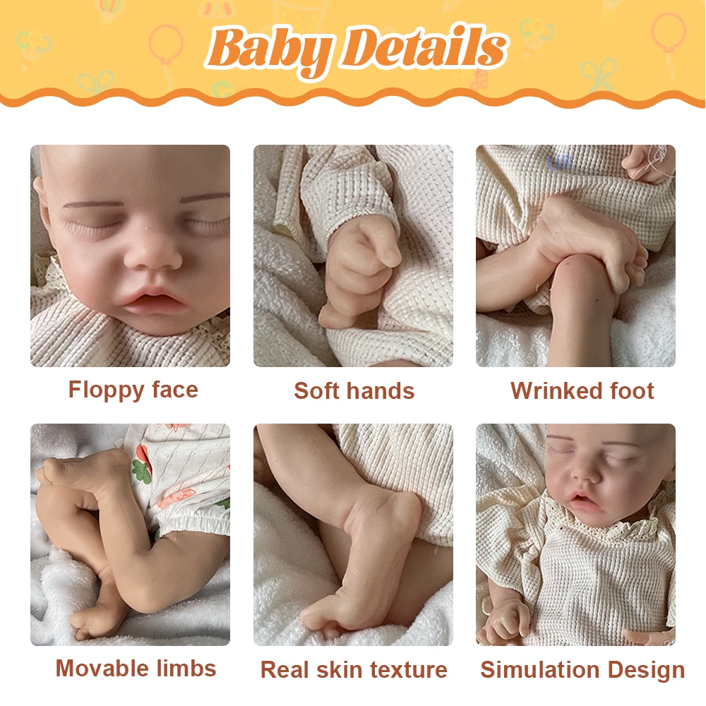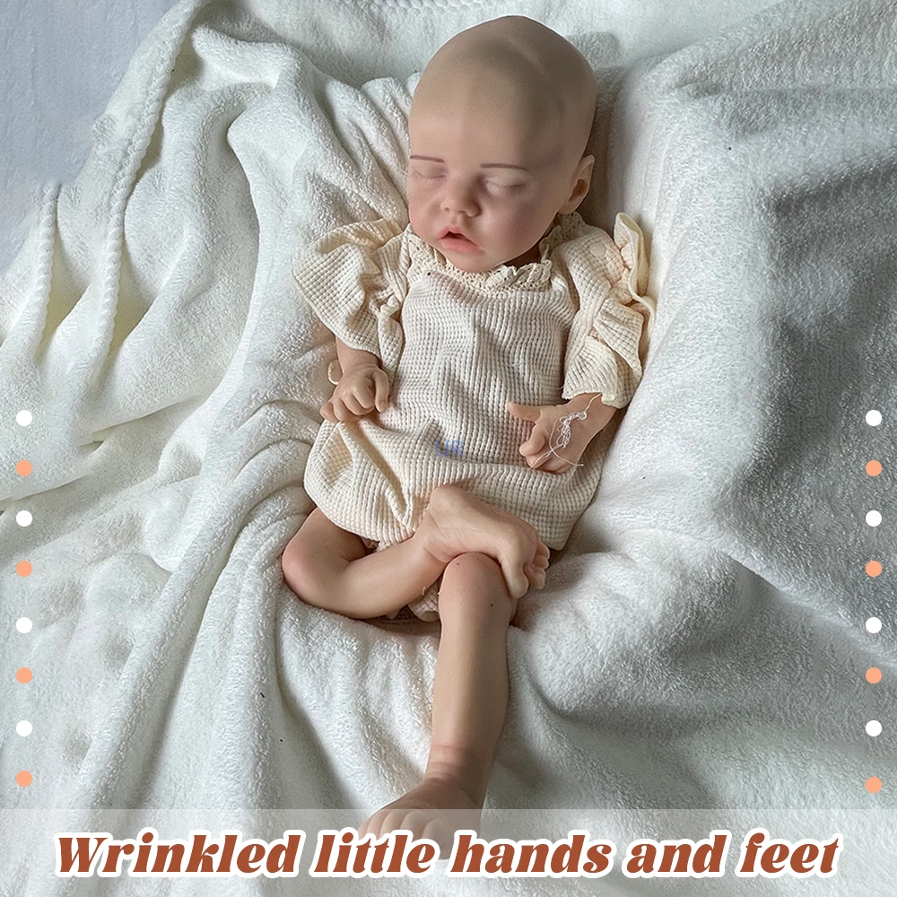 ★ Full body silicone : Our reborn baby doll is made of full platinum liquid silicone, she is a Solid reborn baby doll ★ Better than Vinyl material : Medical silicone material is more environmentally friendly than vinyl and safer for your babies. ★ PVC Free, Non-Toxic ★ More real feeling : Our doll's touching feeling is like a real baby than Vinyl dolls ★ Great for Child and Best Choice For Adoption : Let your child feel that he is a playmate and not just a toy. Because it is a Weighted Body for a "Real" Baby Feel. ★ The best gift for your child to improve social ability and open up thinking. Children will acquire strong cognitive abilities. ★ The best choice for collecting baby dolls . So we think you should choose us, Not only to give you lifelike baby dolls but also to give you more choices. We have realistic baby dolls of different sizes and genders. She is about 18inch ,painted baby girl( Anatomically Correct) Net weight is :5.6lb She has veins,her painting job is amazing, and she can also take a pacifier Warm Tips: This reborn kit just comes naked, doesn't come with any outfits & blankets. -Each of our dolls is purely handmade, and the pictures are real-life photos. -There may be slight differences between each silicone doll, and there may be slight flaws. -It is normal to have demolding marks on the top of the head. If you mind, please choose carefully. -the makeup of each doll is hand-painted, so there will be some differences between each doll. These dolls have private parts. You can bath this realistic baby doll. It has a solid full silicone body, it is waterproof. Baby powder can be use or a silicone matting powder. Medical silicone material is more environmentally friendly than vinyl and safer for your baby. PVC free, Non toxic Buyers Notice Keep in mind because the doll's head has silicone injection hole, The injection hole is one of the process of making dolls. So it will leave a slight mark on its head. This is not a a doll's quality problem. The artists are very diligent in the creation of these silicone babies.. If you have any questions or need additional photos, please don't hesitate to contact me.