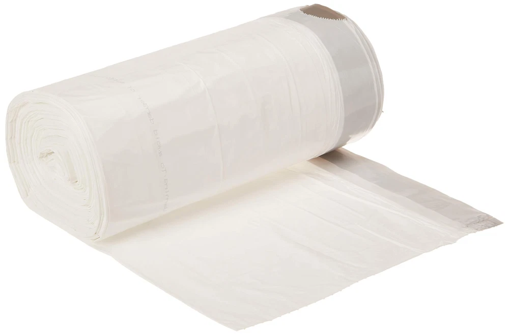 An Amazon Brand 18 gallon compactor trash bags for commercial businesses and properties Made of durable opaque plastic Designed for use with built-in kitchen trash compactors with an 18 gallon capacity Drawstring closure makes disposal easy 50 count; 2 Mil