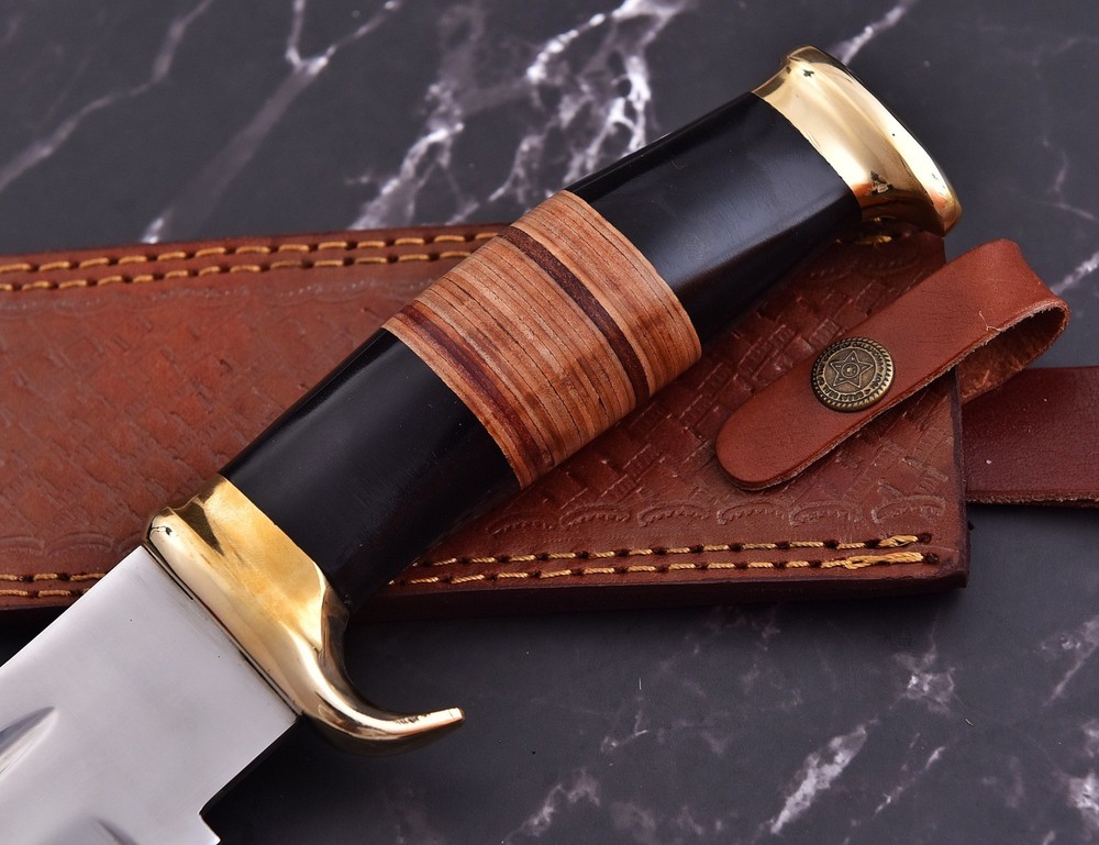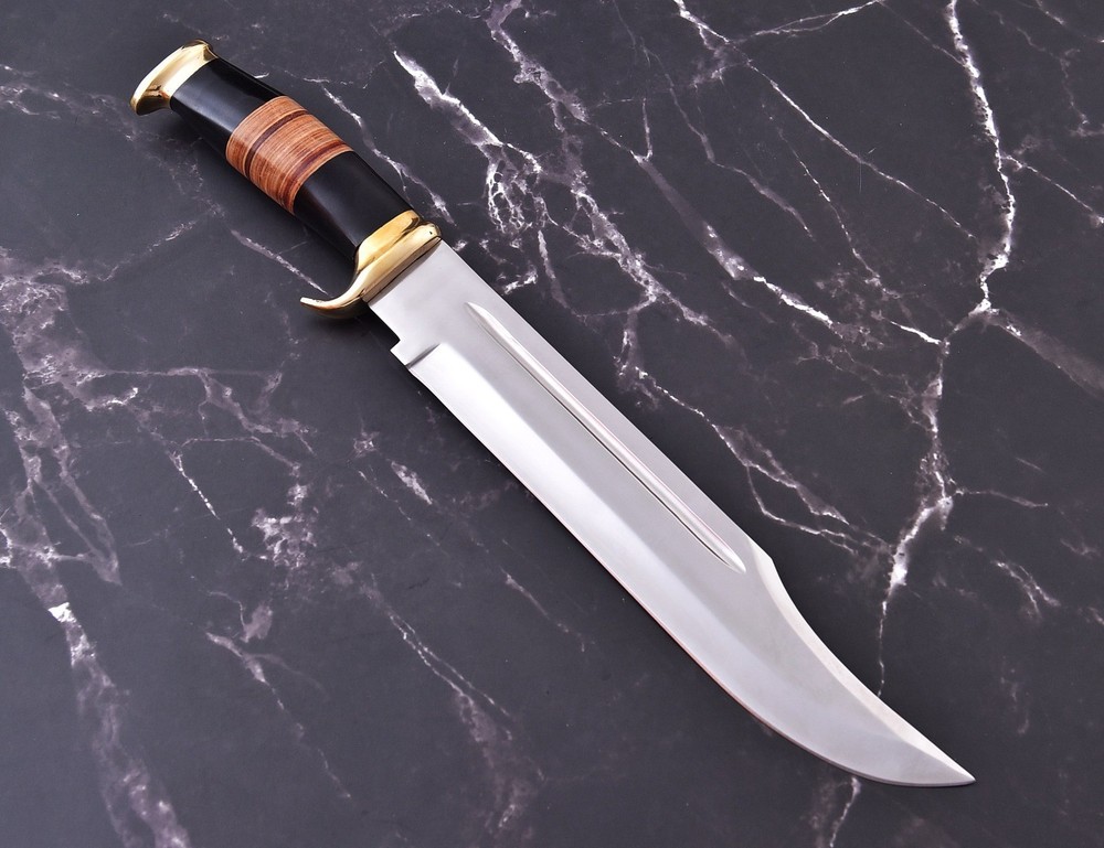18" SHARD BLADE Handmade D2 Steel Hunting Crocodile Dundee Bowie Knife W/Sheath This is a catalog picture. You will receive the knife as shown in the picture but the blade patterns and handle material may vary slightly. Overall Length: 18.0” Inches Blade Length: 12.0”Inches Handle Length: 6.0”Inches Damascus Design: Twisted Patterns Layers: 512 Handle: Brass Guard & Bull Horn Handle Sheath: Leather Hardness: 50-55 HRC ''All of our knives are 100% hand crafted. True quality material used to form the blade. The handle materials, blade steels, and leather sheaths are made professionally with no expense spared. Great handle fitting, exception sharp edge, nicely balanced grasp'' Payment: Immediate payment is required and we accept PayPal ONLY. Please feel free to email us in case there is an expected delay or if you intend to combine payment with payments of other auctions ending soon. We will file for "Unpaid Item Claim" with eBay after 7 days if we don't hear from the buyer or the payment is not received. Shipping and Handling : We offer free shipping on all products Handling Time: All items are shipped within 48-72 hours of the receipt of payment (excluding weekends). Delivery Time: First Class (13 oz or less) 3-7 business days, Priority Mail 2-4 business days. Tracking Info: The buyer will receive the tracking number through email (if available). You can also track the shipment through "Order Details" section of the item within eBay. USPS updates tracking information every evening (if available). Our Guarantee: The products sold here are of very high quality and we guarantee your complete satisfaction. To maintain high quality, each knife goes through a rigorous Quality Assurance process. We also check each knife before shipment and ensure that our customer receive the finest quality knife. In case there is a problem with the knife/shipment, please feel free to contact the seller. We value your timely payments. That's why we will leave you positive feedback immediately after the item is shipped. We expect buyers to leave positive feedback once the item is received. If the buyer is happy with the item and process, we expect 5-Star Rating in all categories. Legal Disclaimer: By bidding on this item, you certify that you are over the age of 18 and legally responsible for the purchase and use of the item. The seller will not be responsible for any illegal purchase or use of the product.