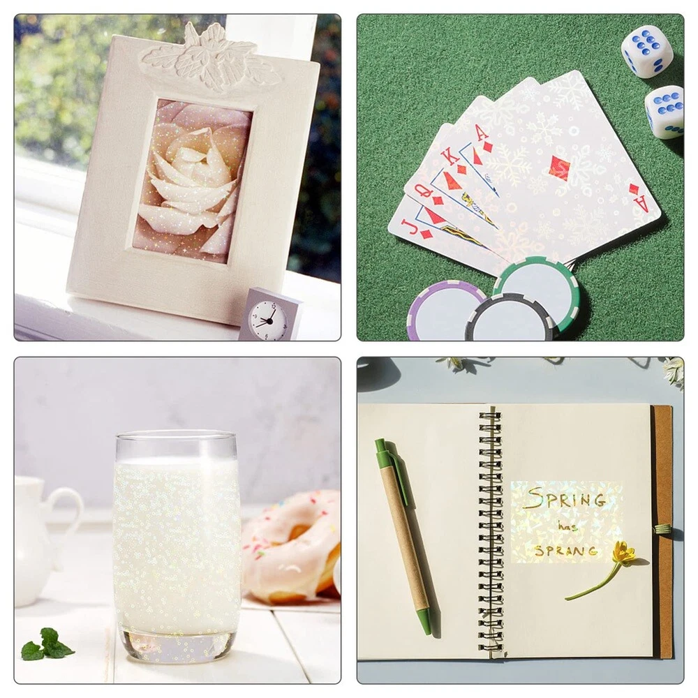 18 Holographic Stickers, Self-Adhesive Transparent Film, A4 Sticker2555 Package contents: You receive 18 holographic stickers, including 6 patterns, including broken glass, paint, heart-shaped star-shaped film, snowflakes and circles. Each pattern has 3 pieces, with a variety of styles and sufficient quantity to meet your needs. Excellent material: this holographic sticker is made of Plastic/Resin material, non- and odourless, with strong tensile strength, not easy to tear, waterproof and wear- and . Easy to use: This holographic sticker is easy to use, so you can easily tear off the adhesive back and to a smooth, flat, clean , dry quickly and stick firmly. The sticker is easy to cut and the A4 size can be cut to any size you want. Exquisite decoration: This transparent sticker has a smooth printed with exquisite patterns and has a good colour reflection effect. It looks like it is shining in the sun. With this exquisite decorative sticker, your item be more beautiful. Widely used: This decorative sticker can be used for various purposes, such as , mirrors, laptops, diaries, , photo albums, cups, gift boxes and other items. It can also be used as a gift for family and friends. Quantity:18 sheets. 1. This holographic sticker comes in 6 styles and is sufficient in the quantity to meet your use needs. You can use it to decorate items such as diaries, , laptops and cups. 2. Exquisite patterns that glow in sunlight can make your items radiate charm, and I believe they bring you a pleasant mood. Colour:As Shown Material:Plastic/Resin Size:30.21 cm Package Contents: 1set * hologrammfolie