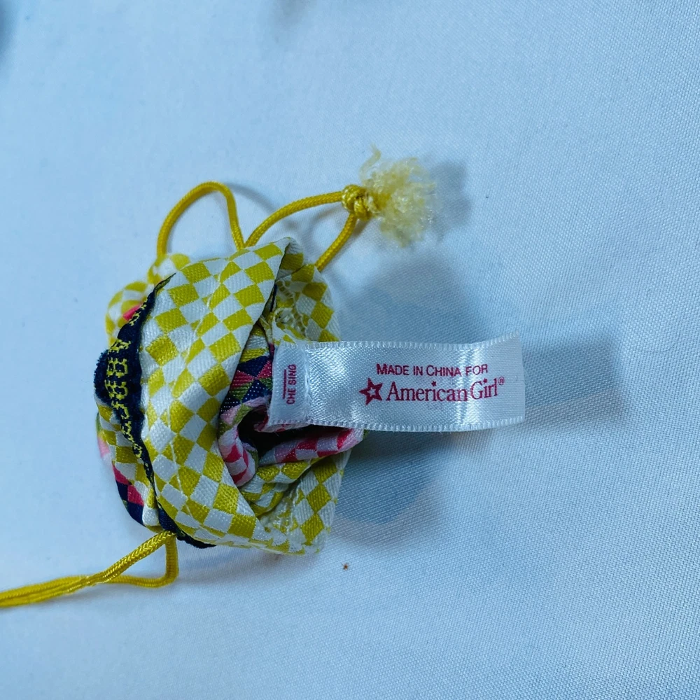 18" American Girl Doll Caroline Abbott's Meet Accessories - Drawstring Purse/Bag + Wooden Spinning Top. Also includes her plush pet cat "Inkpot". In excellent condition, no flaws to note. Please see all pictures for exact cosmetic condition and other details, and ask any questions before purchasing. We are a husband and wife team with a growing family, and greatly appreciate your support of our small business. Please browse our eBay store for a variety of other American Girl items. We hope you enjoy this set!
