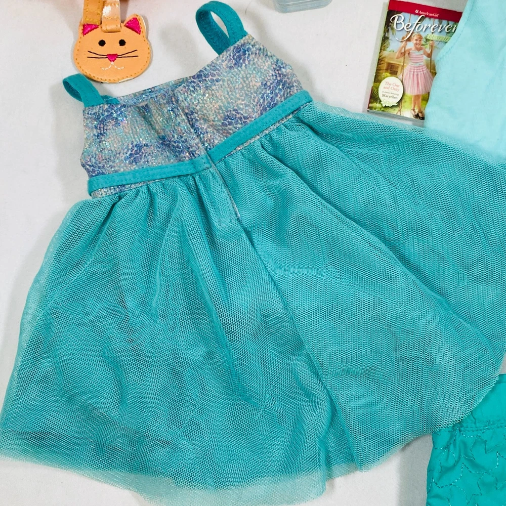 Year Manufactured: 2018 Original/Licensed Reproduction: Original Color: Blue Type: Clothing Item Height: 18 in Doll Gender: Girl Doll Occasion: Party Time Period Manufactured: 2010-2019 Brand: American Girl Unit of Sale: Single Unit Material: Cloth Doll Type: Play Doll Set Includes: Dress, Skirt, Top, Tote, Travel Accessories Character: Truly Me Vintage: Yes