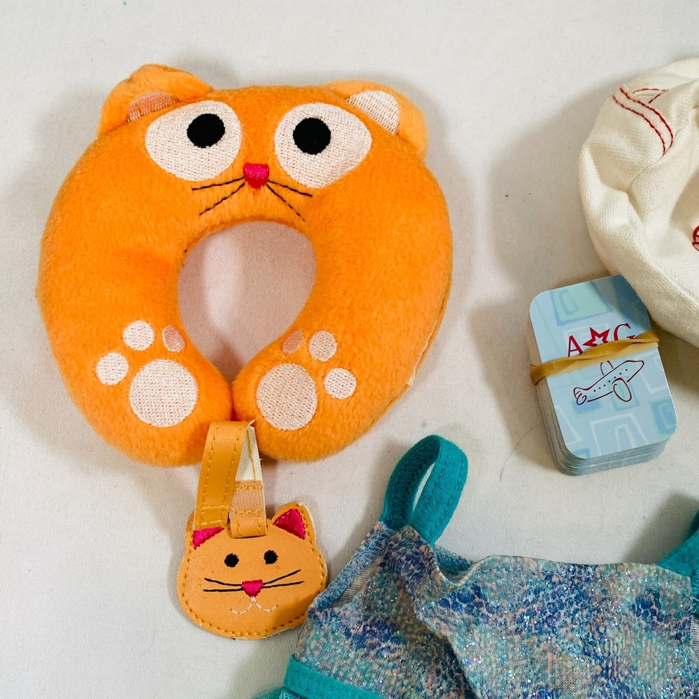 18" American Girl Doll Truly Me Mix & Match Set. Includes 2018 Blue Sea Dress, Side-Cinch Tank, Star Quilt Skirt, Travel Bag w/ Playing Cards & Hair Accessories, & OG Neck Pillow. In excellent condition, no flaws noted. Please see all pictures for exact cosmetic condition and other details, and ask any questions before purchasing. We are a husband and wife team with a growing family, and greatly appreciate your support of our small business. Please browse our eBay store for a variety of other American Girl items. We hope you enjoy this set!