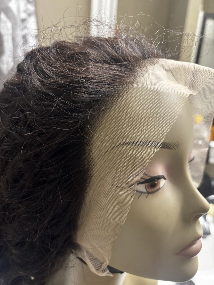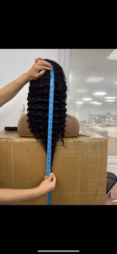This is a new deep wave pre plucked real human hair 18 inch wig the lace is 13x4 and density is 180. This hair comes with 2 wig caps 1 edge brush and a set of eye lashes. For any questions or extra pictures you are welcome to message.