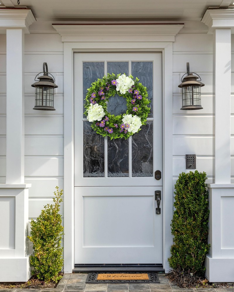 18 Inch White Hydrangea Wreath for Spring Summer Front Door Decor