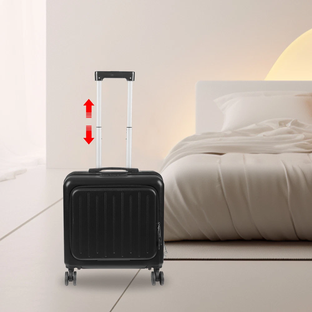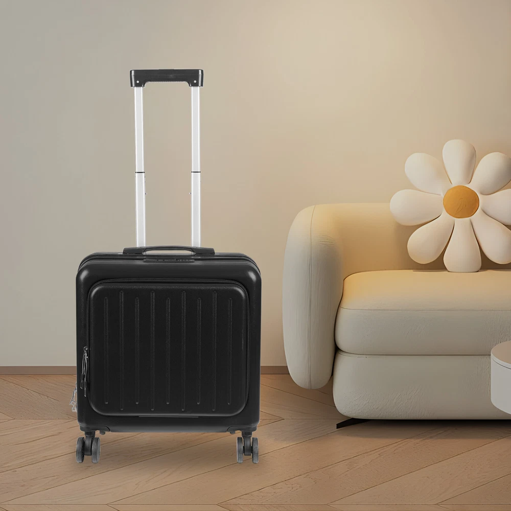 18" Multi-function Black Suitcase Password Suitcase W/ USB Port+Cup holder Description Our 18" boarding suitcase is designed specifically for modern travelers, with a groundbreaking front lid design, USB interface, cup holder, and password lock that combine convenience, security, and technological elements, making it the ideal companion for your short-term business or leisure trip. Have it now, make every trip a joyful exploration journey! Specifications Material: ABS, Rubber, Sponge Process: Vacuum Forming Color: Black Shape: Rectangular Style: Modern Assembly Required: No Mount Type: Freestanding Wheel Type: 4 * Universal Wheels Pull Rod Gears: 2 Front Compartment Opening Range: 180° Load Capacity: About 30kg/66.14lbs Capacity: Approx. 47L/12.42gal Gross Weight: 3.75kg/8.27lbs Net Weight: 3kg/6.61lbs Product Size: 45*24*41cm/17.72*9.45*16.14in Package Size: 51*25*44cm/20.08*9.84*17.32in Package Included 1 * 18" Travel Luggage Suitcase Key Features Premium Material: This product is made of premium ABS a vacuum forming process, which is impact and wear-resistant, ensuring a long service life. Large Capacity: The separate front compartment contains a dedicated compartment for most laptops. With an interior capacity of approximately 12.42 gallons, it is large enough to meet your travel needs. Flexible Movement: Four easy-to-move universal rubber wheels, a telescopic rod, and a top handle make it easy to get the case up and down stairs, in and out of the car, and in the lift. High Load Capacity : The rectangular construction and premium materials give this product a load-bearing capacity of approximately 66.14 lbs, giving you peace of mind. High Security: It uses a 3-digit password lock, making it anti-theft, allowing you to safely put valuable items inside. The sponge in the front compartment and the equipped safety strap prevent damage to electronic devices, providing thoughtful protection for your important equipment. Thoughtful Design: The front compartment can be 180° opened, making it easy to take out your passport or computer (not included) while waiting for your flight, making it more convenient for you to travel. Easy to Clean: A simple construction and smooth surface make this product easy to clean, you just need a towel (not included) and water to easily remove dust and residue. Ideal Gift: Its classic design and large capacity make this product a great gift to your family, friends, and loved ones. Buy with Confidence: We stand behind all our guests and look forward to assisting you with your purchase. It is our pleasure to answer your confusion and questions. The end of the story between us is not "we sell and you buy". Details Practical Handle: It is easy for you to grip and move the product. Durable Zippers: They allow for smooth and easy opening and closing of the case, bringing more convenience. Cup Holder: It is convenient for you to place drinks while waiting or resting, keeping your hands free and facilitating easy access. USB Port: It is designed with a USB charging port, which is convenient for charging electronic devices at any time. Application This product can be widely used in short-distance domestic and international tourism, business trips, vacations, exchange visits, academic conferences, and other occasions, which is suitable for most people such as students, business people, tourists, etc. Notes Please carefully check if the size is suitable before placing an order. Please use the product within its weight capacity to avoid damage. The USB port does not charge on its own, you need to supply a power bank (not included). Please allow the slight color difference caused by the shooting light and 1-3cm error due to manual measurement, and make sure you do not mind before you order. Payment Delivery details Terms of sales About us Contact us Payment We accept ebay payment 。 Fees such as import duties, taxes are not included in the item price or shipping costs. These charges are the buyer's responsibility. Delivery details Shipping: 2-9 working days to: USA Terms of sales We maintain high standards of excellence and strive for hundred percent customer satisfaction. Feedback is very important to us. We hope that you contact us immediately before you give neutral or negative feedback, so that we can address your concerns. It is impossible to address issues if we do not know about them! About us Your satis faction is our ultimate goal. We work hard to earn your trust and future business. Our certified technicians have tested each item before shipping. The unit comes with 1 year limited warranty on all manufacturing defects. a) If you receive a defective item, you may return it or ask for a discount. Please contact us within 14 days after you receive the package. b) What you returned must be intact and in its original packaging as re? u. Customer is responsible for shipping costs of the returned item. c) We will cover the cost of shipping back t with the shipping rate indicated in the registration page. We will send you a new unit or refund the full payment you paid. Thank you. Contact us Business Hour Business Hour: Monday To Friday: 8:30 AM to 5:00 PM (Beijing China time) Due to time zones, our reply to your questions may not be immediately. But within above working time, we will reply your email within 24 hours. If it's non-workdays, please kindly be patient and wait till Monday. Please contact us with ebay message. Please feel free to contact us if you have any questions. Monday To Friday: 8:30 AM to 5:00 PM (Beijing China time) Due to time zones, our reply to your questions may not be immediately. But within above working time, we will reply your email within 24 hours. If it's non-workdays, please kindly be patient and wait till Monday. Please contact us with ebay message. Please feel free to contact us if you have any questions.