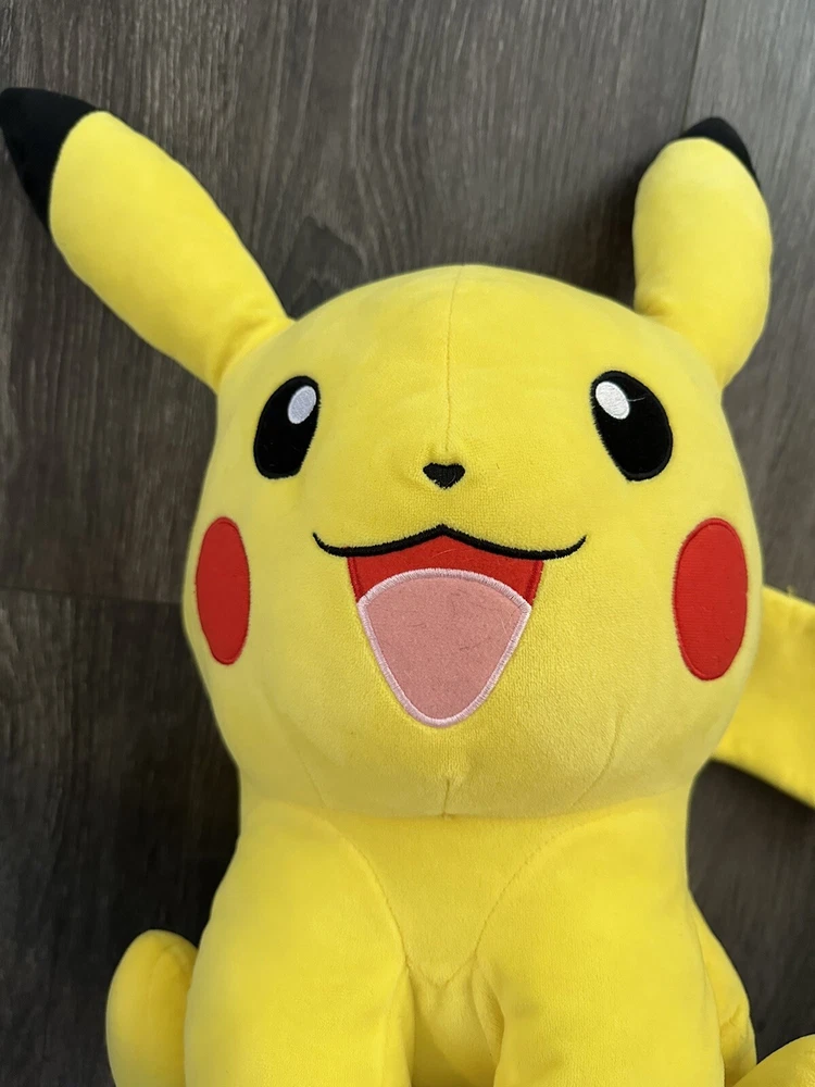 Catch your very own Pikachu with this 18" jumbo plush toy! Made by Wicked Cool Toys, this yellow plush toy features the iconic Pokemon character sitting and ready for your next adventure. Perfect for fans of the Pokemon franchise, this medium-sized plush toy is a great addition to any collection. With its soft and huggable design, this Pikachu plush is sure to become a cherished companion for years to come. Whether you're a seasoned collector or just starting out, this stuffed animal is a must-have item. So why wait? Add this adorable Pikachu plush to your collection today! 3-11-24