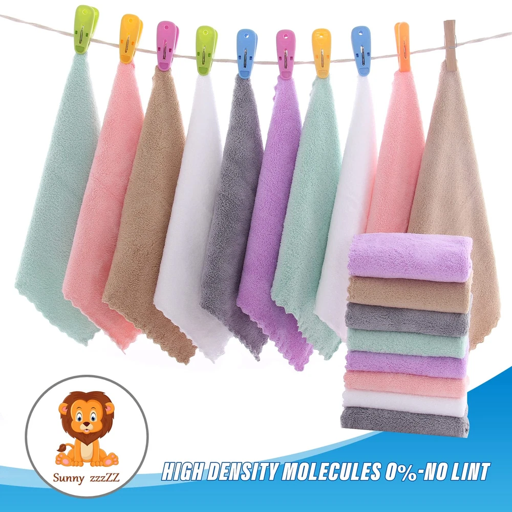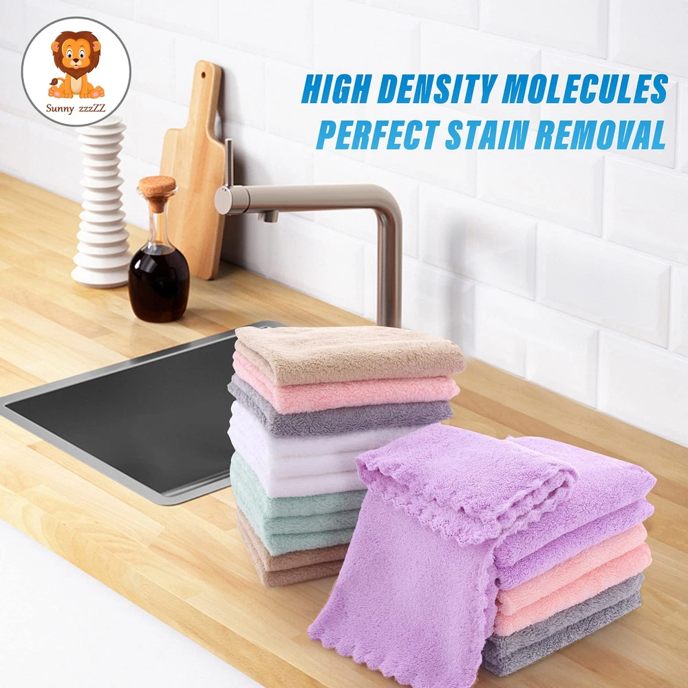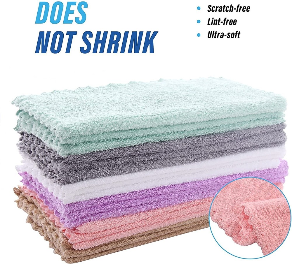 Does Not Shed Fluff - High Quality Coral Fleece Machine Washable & Reusable Cut down your spending on paper towels and reduce your carbon footprint. Dish cloths can be reused up to 50x times. Just toss them in the washer or place them on the top rack of your dishwasher. Does Not Shed Fluff - High Quality Coral Fleece SIZE:10 x 10'' QUALITY COUNTS - Dish cloths have a looped outer weave that gives them high absorption and scrubbing power, while the tight under-weave supports the integrity of the fabric, adding to its strength and durability. Coral fleece fabric is naturally sustainable and soft to the touch. No Odor - Get tough on dirt with a dish cloth. Each sewn edge of the cloth is finished with durable and colorful piping to prevent fraying or ripping during use. At 10 x 10'', our dish cloths fit comfortably in your hand without folding or wadding up when itÍs time to do the dishes, clean appliances, or wipe down counters. They are a great size for storage around the sink, too. These quick-drying, easy-to-clean and odorless kitchen wipes, are a perfect sponge replacement! WHOLESALE PRICING - Washable, reusable, durable, and sanitary, Coral fleece dish cloths last a long time when compared with cotton dish rags, cellulose dishcloths and sponges. You can expect long-lasting productivity from these dish cloths that wonÍt fall apart or smell too bad to keep. Each package contains 18 cloths. EASY-CLEANING CLOTHS - Keep these dish cloths sanitary and smelling fresh with a regular laundry routine.