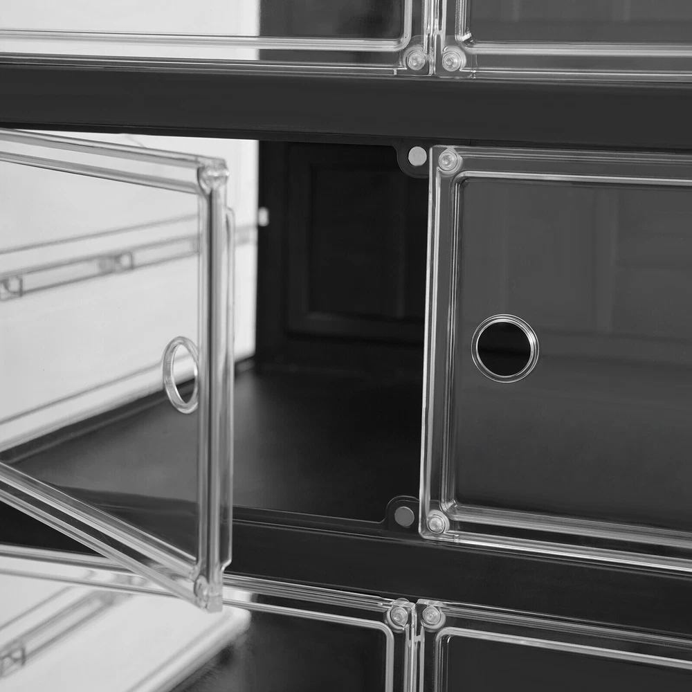 18 Pairs 9 Layers Shoes Standing Cabinet Storage Shoe Rack Organizer Dustproof Application It is suitable for entrances to bedrooms, living rooms, cloakrooms, stairs, etc. It can be used to store various types of shoes such as high-heeled shoes , sports shoes, and high boots. How to Install 1. Open the packaging and remove the cabinet. 2. Fold dow n and stretch the cabinet, and insert the middle partition and back plate into the fixed slot. 3. Pull out the door panel and complete the installation. Specifications Material: PP and PS Process: Injection Molding Style: Modern Color: Black, Clear Shape: Rectangular Assembly Required: Yes Mounting Type: Floor Standing Number of Tiers: 9 Number of Wheels: 4 Each Tier Load-bearing Capacity: About 3kg/6.61lbs Product Size: 44*34.5*169cm/17.32*13.58*66.54in Tier Spacing: 31cm/12.2in, 17.5cm/6.89in Package Size: 51*40*33.5cm/20.08*15.75*13.19in Gross Weight: 11.5kg/25.35lbs Net Weight: 10.6kg/23.37lbs Package Included 1* Shoe Cabinet Description Are you still struggling with organizing a large number of shoes? Our shoe cabinet can solve your problem. The high-class materials and exquisite craftsmanship make it sturdy and durable. The 9-tier design and strong load-bearing capacity can meet your storage needs. With its generous appearance, it can easily blend into your home. In short, it is your assistant for organizing shoes! Key Features Build to Last : Made of PP and PS with an injection molding process, this product is impact-resistant , tear-resistant, and durable, ensuring your long-term use. Storage Assistant: Its top can be used to store items. The 9-tier design with a heightened (12.2'') bottom compartment allows you to store various types of shoes such as high-heeled shoes , sports shoes, and high boots, making full use of vertical space to organize your shoes in an orderly manner. Strong Load-bearing Capacity: High-class materials and sturdy structure make each tier capable of bearing about 6.61 lbs, allowing you to use it with confidence. Foldable Design: The foldable design allows you to place it on the floor and pull it apart to use it after installation. In addition, it allows you to store the product in a corner when not in use without taking up much space. Thoughtful Design : The clear door panel allows you to see the shoes inside clearly, making it convenient for you to search for shoes. The magnetic double door design can prevent dust from entering the interior and keep the shoes as clean as new. The round holes on the door panel make it convenient for you to open and close the door. Easy to Clean: It has a smooth surface and a simple structure, so you only need to wipe the dust with a towel regularly. Ideal Gift: This practical product can be used as an ideal housewarming, birthday, and holiday gift for parents, friends, and loved ones. Customer Service: We stand behind all our guests and look forward to assisting you with your purchase. It is our pleasure to answer your confusion and questions. The end of the story between us is definitely not "we sell and you buy". Details Wheels: The bottom 4 wheels make it easy for you to move this product from one place to another without spending too much time and effort. Smooth Edges: The smooth edges and round corners not only enhance the aesthetics of the product but also improve safety during installation and use. Notes Please use this product within the load-bearing range. Please note that this product does not include shoes. Please allow the slight color difference caused by the shooting light and 1-3 cm error due to manual measurement, and make sure you do not mind before ordering. Payment Delivery details Terms of sales About us Contact us Payment We accept ebay payment 。 Fees such as import duties, taxes are not included in the item price or shipping costs. These charges are the buyer's responsibility. Delivery details Shipping: 2-9 working days to: USA Terms of sales We maintain high standards of excellence and strive for hundred percent customer satisfaction. Feedback is very important to us. We hope that you contact us immediately before you give neutral or negative feedback, so that we can address your concerns. It is impossible to address issues if we do not know about them! About us Your satis faction is our ultimate goal. We work hard to earn your trust and future business. Our certified technicians have tested each item before shipping. The unit comes with 1 year limited warranty on all manufacturing defects. a) If you receive a defective item, you may return it or ask for a discount. Please contact us within 14 days after you receive the package. b) What you returned must be intact and in its original packaging as re? u. Customer is responsible for shipping costs of the returned item. c) We will cover the cost of shipping back t with the shipping rate indicated in the registration page. We will send you a new unit or refund the full payment you paid. Thank you. Contact us Business Hour Business Hour: Monday To Friday: 8:30 AM to 5:00 PM (Beijing China time) Due to time zones, our reply to your questions may not be immediately. But within above working time, we will reply your email within 24 hours. If it's non-workdays, please kindly be patient and wait till Monday. Please contact us with ebay message. Please feel free to contact us if you have any questions. Monday To Friday: 8:30 AM to 5:00 PM (Beijing China time) Due to time zones, our reply to your questions may not be immediately. But within above working time, we will reply your email within 24 hours. If it's non-workdays, please kindly be patient and wait till Monday. Please contact us with ebay message. Please feel free to contact us if you have any questions.