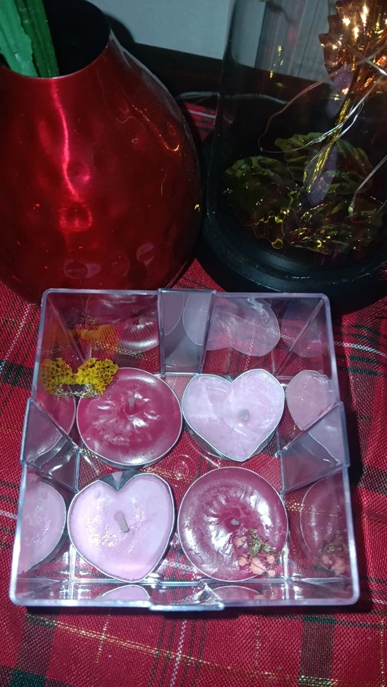 Item Weight: 10 oz Features: Decorative, Scented, Single Wick, tealight candles, floral embedded Candle Type: Tea Light Personalize: No Country/Region of Manufacture: United States Theme: Floral & Garden, Flowers, Nature, Romantic, valentine's, valentine's day, Love & Hearts, Special Occasions Color: Multicolor Model: scented tealight candles Burning Time: 2.5 hrs Number in Pack: 18 Handmade: Yes Power Source: wick Shape: Tealight Material: Soy Wax Item Width: 1.57 in MPN: unknown Size: Small Room: Bathroom, Bedroom, Dining Room, Entryway, Foyer, Guestroom, Indoor, Kitchen, Living Room, Lounge, Outdoor, Porch Style: Modern Type: Scented Candle Brand: Unbranded Customized: No Scent: strawberry Item Height: 1 in