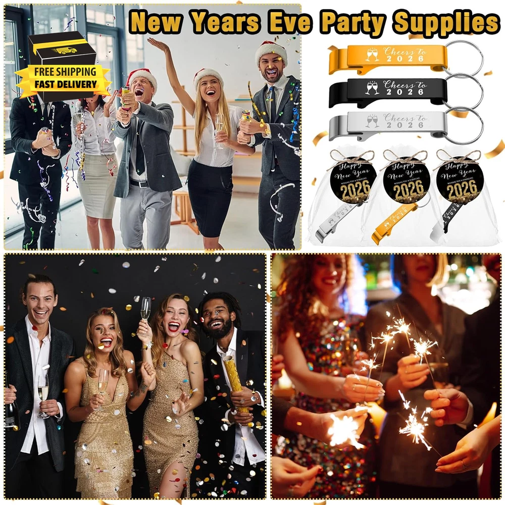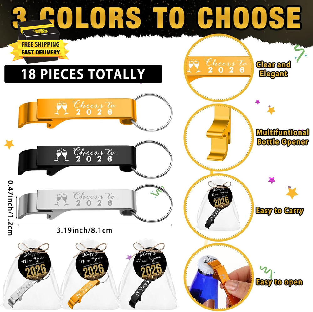 Store New Arrivals Add to Favorite View Feedback Contact 18 Sets 2026 New Year'S Eve Party Supplies Bottle Opener Keychains 2026 Happy New Year Cards with Bags Eve Gifts for Coworker Family Staff Friends Staff Party Decoration ⭐️⭐️⭐️⭐️⭐️ Description Item model number BAN--0952 Unit Count 18.0 Count Item dimensions L x W x H 3.94 x 3.94 x 2.76 inches Item Package Quantity 18 Color Black, Gold, Silver Product Dimensions 3.94 x 3.94 x 2.76 inches Material Metal, Paper Item Weight 7.8 ounces Theme New Year's Eve Age Range (Description) Adult Occasion New Year's Generous Package Inclusion: the New Year's Eve party supplies includes 18 bottle opener keychains, 18 thank you cards, and 18 organza bags, 1 bundle of rope, your go-to party package for your New Year's Eve gathering, enough for you to share with others Ideal Size: these New Year's Eve party decoration have suitable size; The bottle openers about 3.19 x 0.47 inches, the thank you cards are sized about 2.36 x 2.36 inches, and the organza bags have dimensions of about 3.94 x 4.72 inches Celebratory New Year's Eve Styling: keeping in tune with the New Year's Eve Party theme, these New Year's Eve bottle opener keychains sport the distinctive “Cheer to 2026” style, imparting a celebratory and welcoming aura appealing to your guests, fostering a jovial and delightful atmosphere Material Quality: the Happy New Year gifts bottle opener bulk are made from alloy, ensuring rust protection and durability; Similarly, the cards are crafted with quality paper, durability while adding a classy touch to your party's overall look Wide Range of Functionality: our Happy New Years party supplies are remarkably versatile; The bottle opener keychains are not just handy for popping open celebratory drinks but can also serve as distinct decorative items for your keys and other personal items Product description ABOUT US We offer the best prices around on high quality products. Our E-store includes media such as books, movies, music and games while offering electronics, toys, sporting apparel, clothing, tools, general home, garden items and more. SHIPPING We are always working hard to ensure your package arrives as soon as possible. Please understand that some factors like weather, high postal traffic, and the performance of shipping companies are outside of our control. We offer free shipping to the lower 48 states and ship within 2 business days of payment, usually sooner. We do not accept P.O. Boxes. Please provide a physical address. For shipping outside of the continental USA, we only use eBay's Global Shipping Program.The item is shipped to KY and then sent to the rest of the world. International customers are responsible for all duties and taxes. Continue to check out in order to calculate costs for shipping the item to your country. Messages regarding eBay's Global Shipping Program MUST be directed at eBay EXCLUSIVELY. RETURNS We offer a 30-Day Return Policy on items which you are not completely satisfied with. You have the option for a full-refund or an exchange of the item. No returns are available on items shipped outside of the USA. PAYMENT We accept PayPal. CONTACT US This page content is yet to come Please ad us to your favorite seller and visit again later Thank You CUSTOMER SATISFACTION We try our very best to make sure every customer is completely satisfied. If there's a problem, message us! We're happy to help. WE ACCEPT Copyright © 2021 AutoDS. | All Rights Reserved