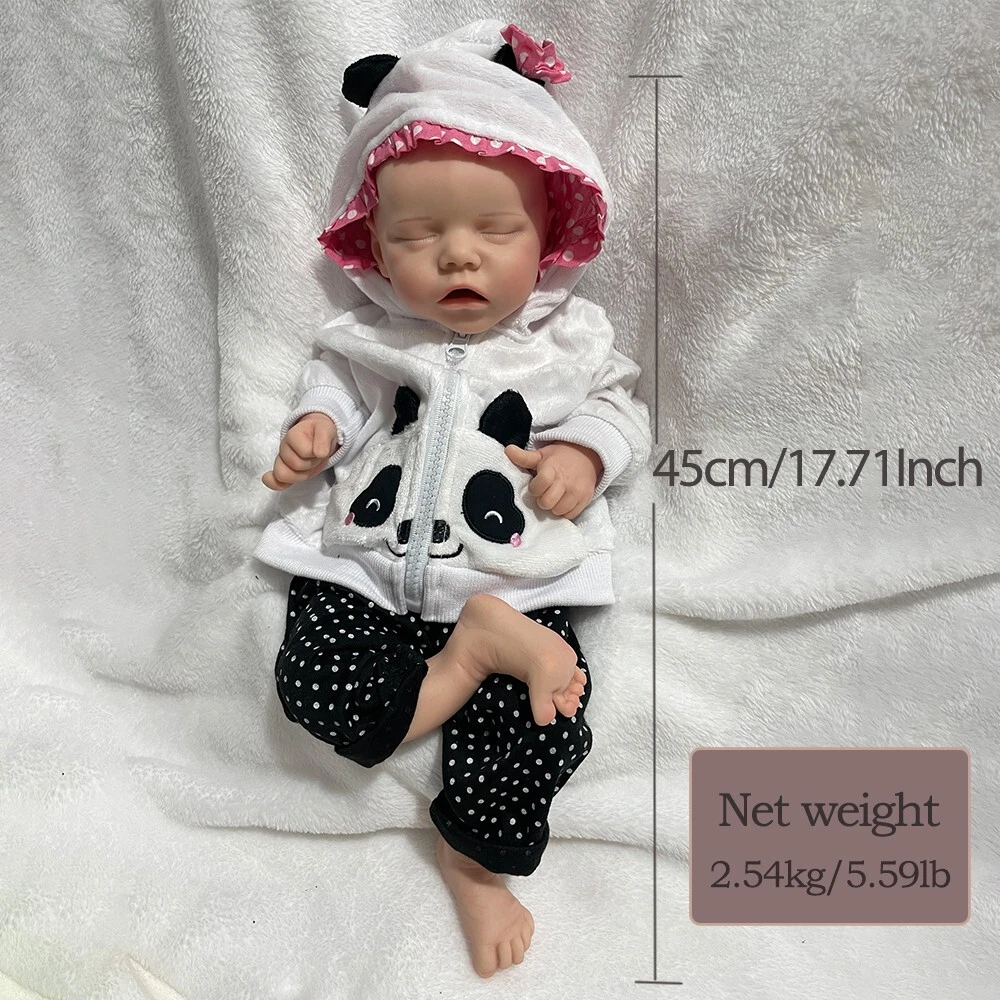 She is about 18 inch ,painted baby girl(Anatomically Correct) Net weight is :5.6 lb Mouth: she can take a pacifier Function: Doll's limbs are flexible and poseable, the doll can sit, lay down easily and have a bath, but cannot stand up, speak, pee, blink PACKAGE LISTS: 1x Full silicone baby girl. 1x outfit (by random) ★Full body silicone: Our reborn baby doll's is made of Platinum Liquid Full Silicone, she is Solid reborn baby dolls ★Better than Vinyl material: Medical silicone material is more environmentally friendly than vinyl and safer for your babys. ★PVC Free, Non-Toxic ★More real feeling: Our doll's touching feeling is like a real baby than Vinyl dolls ★Great for Child and Best Choice For Adoption: Let your child feel that he is a playmate and not just a toy. Because it is Weighted Body for a "Real" Baby Feel. ★The best gift for your child to improve social ability and open up thinking. Children will acquire strong cognitive ability. ★The best choice for collecting baby dolls. So we think you should choose us, Not only give you the lifelike baby dolls, but also give you more choices. We have different sizes and genders realistic baby dolls. • Safety: Conforms to the safety requirements of ASTM F963 and EN71 for ages 3+ 【Kind Reminder】Each of our dolls is purely handmade, and the pictures are real-life photos. There may be slight differences between each silicone doll, and there may be slight flaws. If you mind, please choose carefully. 【User Notice】 Our reborn baby dolls' head has a silicone injection hole. The injection hole is one of the processes of making dolls. So it will leave a slight mark on its head. This is not a doll's quality problem. Tips: Silicone doll daily care can be done by patting talcum powder all over the body after cleaning the doll, keeping it dry and avoiding sticking.