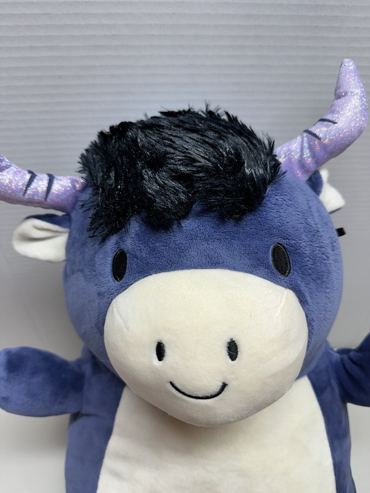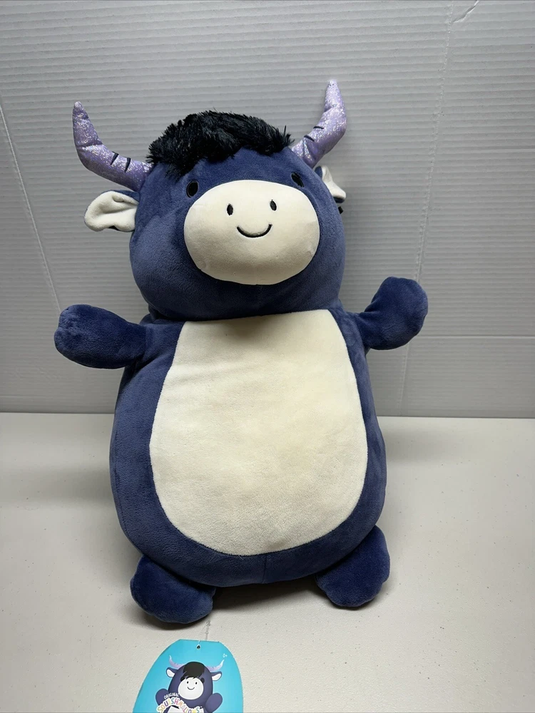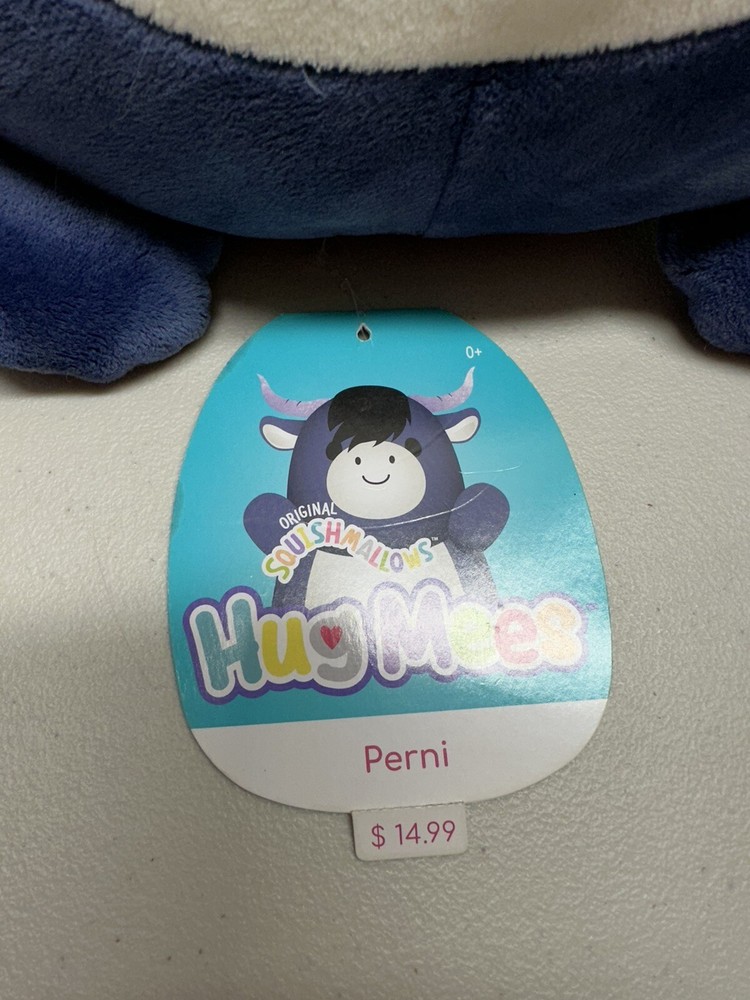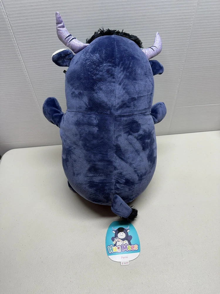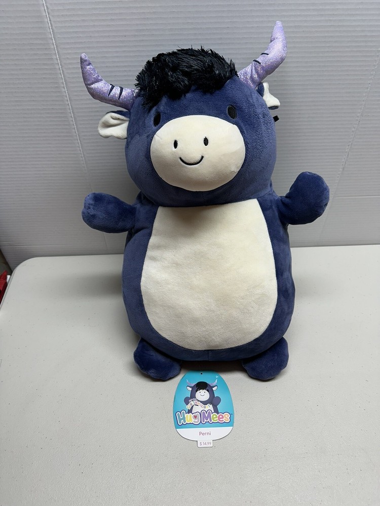 Bring home the adorable Squishmallows 2022 Perni the Bull 18" plush toy from Kellytoy. This huggable and loveable toy is perfect for kids and adults alike. Made with high-quality materials and attention to detail, it features a soft and squishy texture that makes it perfect for snuggling or adding to your collection. This cute and cuddly bull stuffed animal is sure to be a hit with anyone who loves plush toys. With its medium size (14-24 inches), gray color, and unique Hug Mees design, it's ideal for display on a bed, shelf, or anywhere else you want to add a touch of cuteness. Don't miss out on the chance to bring home this charming and lovable Squishmallow today! 40