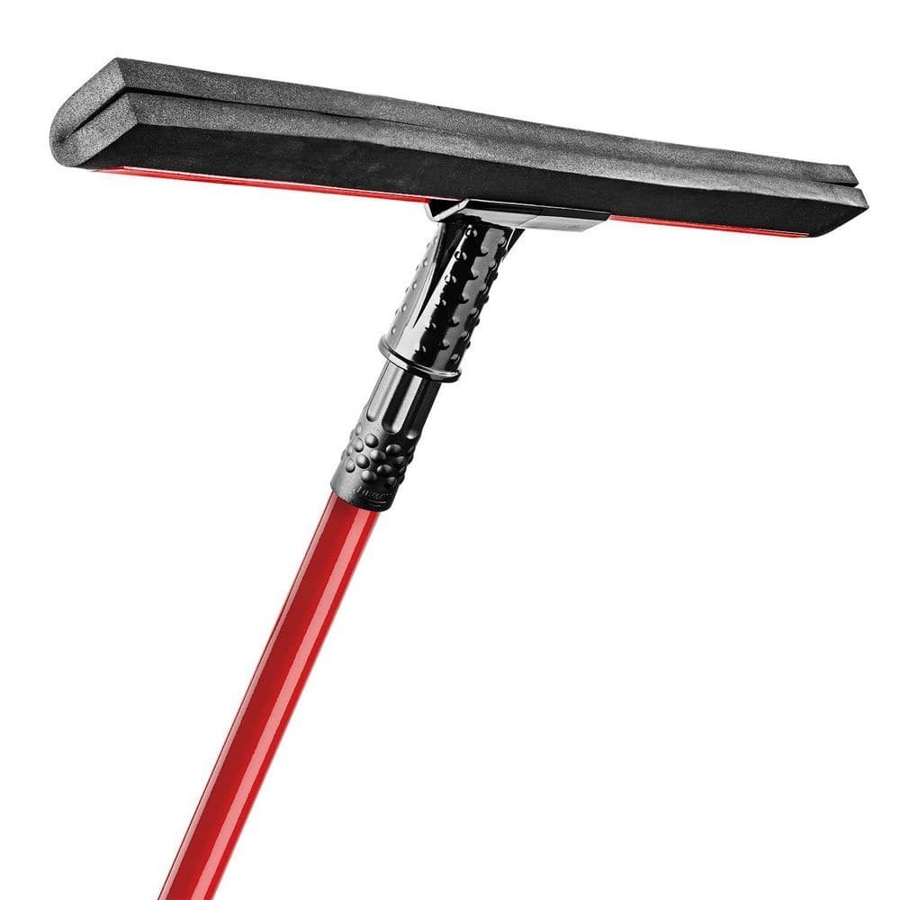 18 in. Flex Foam Blade Floor Squeegee with 52 Handle Steel Straight Durable New This dual flex blade floor squeegee from Libman works great on any surface, but is particularly effective on uneven surfaces such as tile. The flexible moss foam double blade does a great job of getting into the lines, cracks and textures of various floor surface types. The flexible rubber is mounted perfectly straight to remove water from uneven and rough surfaces. Ideal for removing water, chemicals, melting ice/snow and mud. 18 in. W black, closed-cell foam rubber blade Strong handle to head connection point 52 in. L steel handle, connected with standard thread Rivet set to hold squeegee onto the handle neck Great tool to have in your garage, on the jobsite or in foodservice and hospitality environments Handle grip with hanger hole for convenient storage Electrostatic coated handle paint will not chip even if handle gets dinged Style of floor squeegee blade will leave floors dryer faster than other blade types Steel squeegee blade frame is also painted red to prevent rust and corrosion