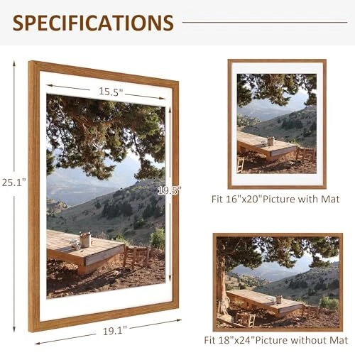 Return Policy Fast Delivery Trusted seller 18 x 24 Poster Frame, Rustic Picture Frames Distressed Brown, Wood Picture Frames 18 x 24 with Mat for 16x20, Farmhouse Picture Frame with Plexiglass for Wall Mount Horizontally or Vertically - Brown Product Description NATURAL SOLID PINE WOOD -handcrafted from natural solid pine, our picture frame has a rustic look with surface-brushed craftsmanship, making it a perfect decoration for any room style from rustic to modern. 18x24 WOOD PICTURE FRAME - Our photo frames are available in displaying 16x20 with mat and 18x24 without mat. Minimalist design for maximum display of your precious photos and moments. HD SHATTERPROOF PLEXIGLASS - With thick lightweight and durable transparent plexiglass, it is scratch-resistant and easy to clean, preserving your precious memories. Please tear off the protective film before use. MULTIPLE DISPLAY WAYS - Come with pre-designed wall hooks and kickstands, you can easily display your photos horizontally or vertically on the wall, or use them on nightstands, coffee tables, and desks independently. GREAT GIFTS IDEA - Our wooden picture frames are simple and natural in design, perfect for displaying and preserving your precious moments. Hang it on your living room, bedroom, office, apartment, or dormitory wall to decorate your space. It also makes a great gift for Christmas, anniversaries, birthdays, graduations, weddings, baby showers, and housewarming. Shipping Returns Payment Shipping Shipping is FREE to all addresses other than APO/PO boxes in the lower 48 states. All our stock ships from US-based warehouses. Shipped via USPS or UPS (depending on location and package weight) Unless stated otherwise, all orders will ship within 24-72 hours of your payment being processed. Check our feedback to see the great reviews of FAST shipping we offer. Returns Seller does not accept returns Payment We currently accept payment via eBay managed payments only. Once payment is cleared, we will dispatch your shipment within 1-3 business days. Please refer to the "Shipping" tab for more information regarding shipping speed to your destination.