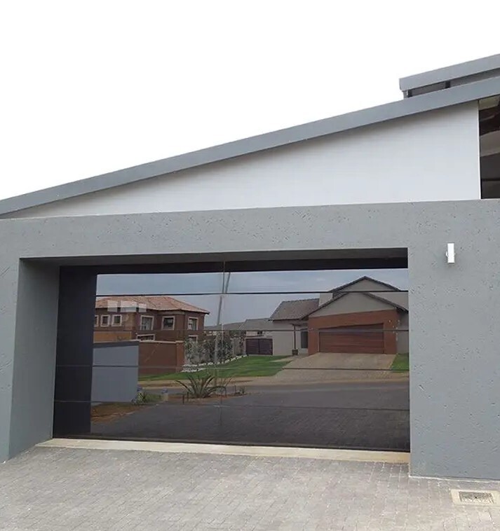 ALSO WE DO HAVE A LOCAL PICKUP FROM OUR WAREHOUSE IN FORT WORTH WHICH YOU CAN CHOOSE ON CHECKOUT PLEASE ALLOW 15 BUSINESS DAYS FOR SHIPPING ON THIS ITEM 18x7 FULL VIEW FRAMELESS GARAGE DOOR WITH BLACK TINTED TEMPERED GLASS SIZE : 18 FT WIDE BY 7 FT TALL COLOR : MATT BLACK ANODIZED GLASS : BLACK TINTED TEMPERED GLASS SECTIONS : 4 WINDOWS PER SECTION : 2 COMES COMPLETE WITH ALL MOUNTING HARDWARE TRACKS SPRINGS