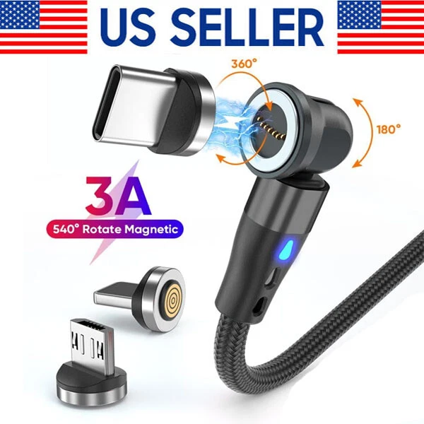 180° 360° Magnetic Fast Charging Cable for Type C Micro USB and iOS Devices