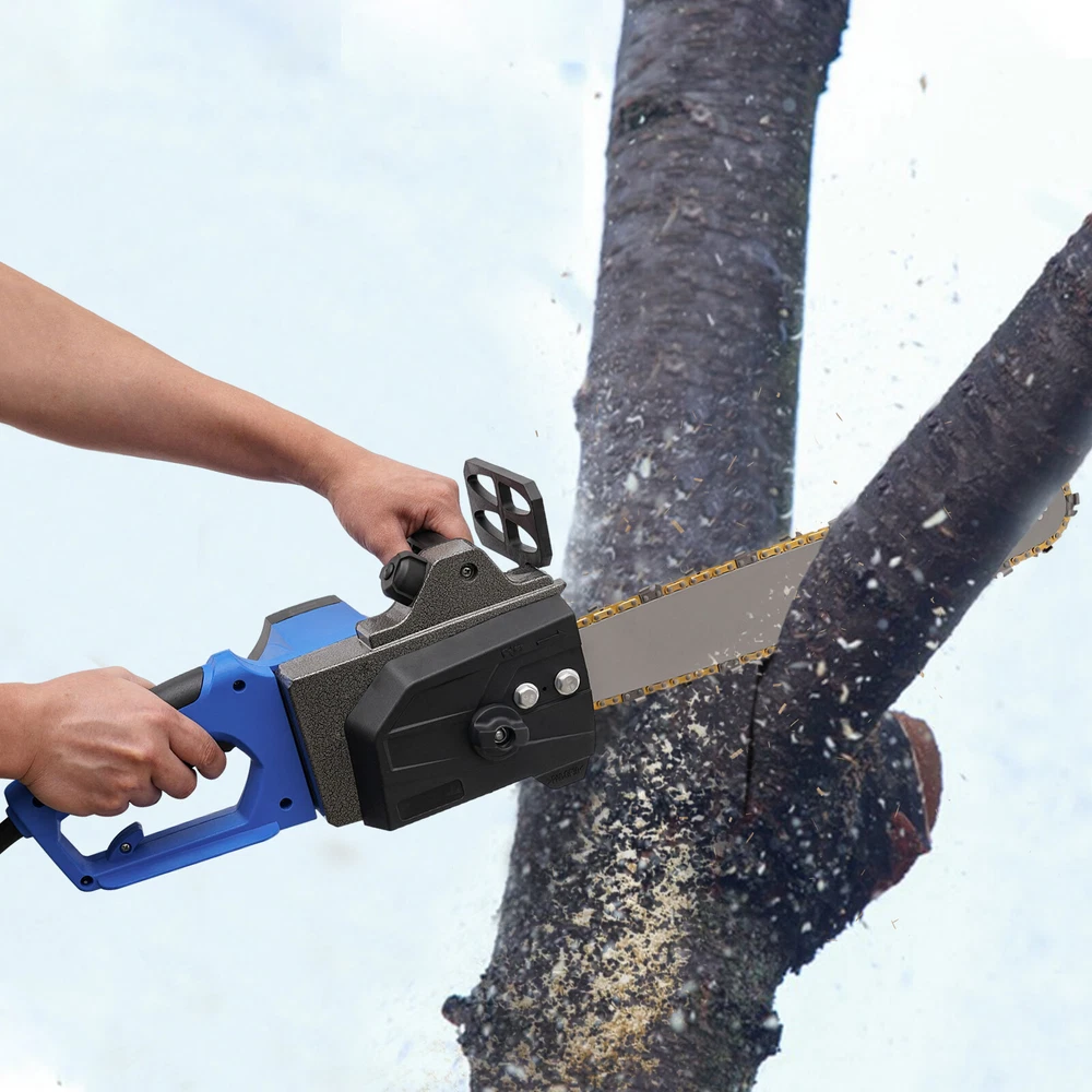 Specification Color: Blue+Black Material: Manganese, Plastic, Copper, Aluminum Number of Items: 1 Style: Modern Assembly Required: Yes Surface Treatment: Quenching Motor Type: Pure Copper Motor Power Source: Corded Electric Plug Type: Us Standard Power Cord Length: 1.8m/5.91ft Voltage: 110V Speed: 600RPM Chain Speed: 15m/49.21ft/S Power: 1800W Maximum Cutting Diameter: 40cm/15.75in Guide Plate Length: 42cm/16.54in Gross Weight: 5kg/11.02 Lbs Product Size(L*H): 78*16cm/30.71*6.3in Package Size: 45*23*20cm/17.72*9.06*7.87in Package Included 1* Corded Electric Chainsaw 1* Chain 1* Guide Plate 1* Guide Plate Sleeve 1* Wrench 1* Chinese & English Manual All Accessories for Assembly 1800W 16 Inch Corded Electric Chainsaw Portable Chain Saw w/ Auto-oiling System Description Using Traditional Axes to Cut Wood Is Inefficient and Very Tiring, so You Can Choose Our Corded Electric Chainsaw for Improving Efficiency in Pruning, Wood Cutting, and Gardening. It Is Made of High-quality Materials and Adopts an Exquisite Quenching Process , so It Is Sturdy and Durable. a Powerful Pure Copper Motor with High Speed Ensures a Great Cutting Effect . Having It Will Make Your Work Easier and Simpler! Specification Color: Blue+Black Material: Manganese, Plastic, Copper, Aluminum Number of Items: 1 Style: Modern Assembly Required: Yes Surface Treatment: Quenching Motor Type: Pure C opper Motor Power Source: Corded Electric Plug Type: Us Standard Power Cord Length: 1.8m/5.91ft Voltage: 110V Speed: 600RPM Chain Speed: 15m/49.21ft/S Power: 1800W Maximum Cutting Diameter: 40cm/15.75in Guide Plate Length: 42cm/16.54in Gross Weight: 5kg/11.02 Lbs Product Size(L*H): 78*16cm/30.71*6.3in Package Size: 45*23*20cm/17.72*9.06*7.87in Key Features Sturdy and Durable: High-quality Plastic Shell, Aluminum, Manganese, and Quenching Process Make It High in Strength, Toughness, Wear Resistance, and Corrosion Resistance, so It Can Be Used for a Long Time Without Frequent Replacement. Self-lubrication System: After Adding Lubricating Oil(Not Included), the Chain Is Automatically Oiled When the Machine Is Running, Which Can Provide Necessary Lubrication for the Chain, Extend Its Service Life, Increase the Safety of Use, Improve Work Efficiency, and Protect the Chainsaw. Moreover, the Visual Design Facilitates the Observation of Oil Levels. High Efficiency: Thanks to a 1800w Pure Copper Motor with 600rpm High Speed, Solid Right Angle Chain, 16.54" Guide Plate, and Fast Chain Speed(49.21ft/S), This Item Can Achieve a Large Cutting Diameter (15.75in) with less Power Consumption, Allowing You to Prune, Saw, and Log with less Time and Effort. Good Heat Dissipation: the Heat-sink Holes on the Machine Ensure a Good Heat Dissipation Effect, Which Can Effectively Avoid Excessive Body Temperature, Thereby Extending the Service Life of the Machine. Thoughtful Design: the Chain Tensioner Ensures Accurate and Convenient Adjustment of the Chain Tension, Making the Replacement and Installation of the Chain Easier. the Ergonomic Handle Gives You a Comfortable Grip Without Slipping, Absorbs Shock, and Reduces Hand Fatigue Even in Long-time Use. an Additional Auxiliary Handle Allows for Convenient Operation. Simple Installation: the Simple Structure, Complete Installation Components, and Detailed Instructions Help You Complete the Installation Quickly and Accurately. Details Guide Plate Sleeve: It Allows for Convenient Storage of the Guide Plate When Not in Use, and Can Protect the Guide Plate Well and Prevent Injuries Caused by Accidental Contact. Guide Plate Cover: It Is Fixed with Double Screws to Prevent the Guide Plate from Sliding up and down, Ensuring Smooth Operation and Safe Use of the Machine. Safe Lock: You Must Press the Safety Lock First and Then the Switch to Start the Chainsaw , Avoiding Miscontact and Injuries Caused by the Accidental Start of the Machine. Protective Baffle: It Reduces Workpiece Debris Splashing to a Certain Extent and Protects You from Injury During Cutting. Long Power Cord: the 5.91ft Power Cord Reduces Usage Restrictions and Further Ensures Your Safety. Dustproof Switch: It Can Prevent the Chippings and Dust from Entering, Extending the Service Life of the Machine. Application It Is Widely Used in Gardens, Parks, Farms, Ranches, Pastures, Orchards, Greenhouses, Forests, Camping, Etc., and Can Be Used for Forest Harvesting, Wood Cutting, Small Branch Pruning, Bush Pruning, Gardening, Home Woodworking, Bamboo Sawing, Logging, Diy Crafts, and so on. Package Included 1* Corded Electric Chainsaw 1* Chain 1* Guide Plate 1* Guide Plate Sleeve 1* Wrench 1* Chinese & English Manual All Accessories for Assembly Notes Please Keep the Product out of Reach of Children to Avoid Injury. Please Note That This Product Does Not Come with Lubrication Oil. Please Read the English Manual Completely Before Installing, and Pay Particular Attention to the Safety Instructions Included. Please Allow the Slight Color Difference Caused by the Shooting Light and the 1-3 Cm Error Due to Manual Measurement, and Make Sure You Do Not Mind Before Ordering. Payment Delivery details Terms of sales About us Contact us Payment We accept ebay payment 。 Fees such as import duties, taxes are not included in the item price or shipping costs. These charges are the buyer's responsibility. Delivery details Shipping: 2-9 working days to: USA Terms of sales We maintain high standards of excellence and strive for hundred percent customer satisfaction. Feedback is very important to us. We hope that you contact us immediately before you give neutral or negative feedback, so that we can address your concerns. It is impossible to address issues if we do not know about them! About us Your satis faction is our ultimate goal. We work hard to earn your trust and future business. Our certified technicians have tested each item before shipping. The unit comes with 1 year limited warranty on all manufacturing defects. a) If you receive a defective item, you may return it o