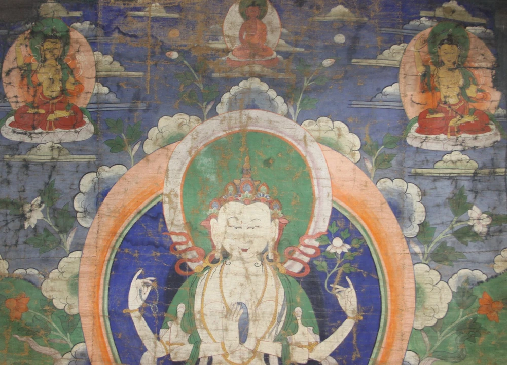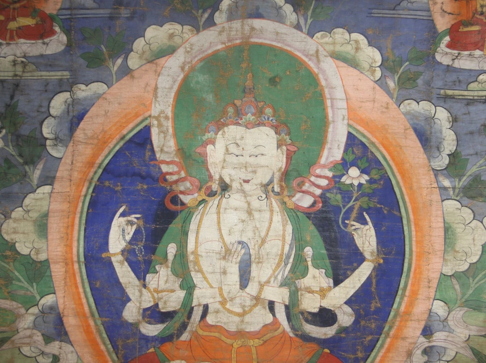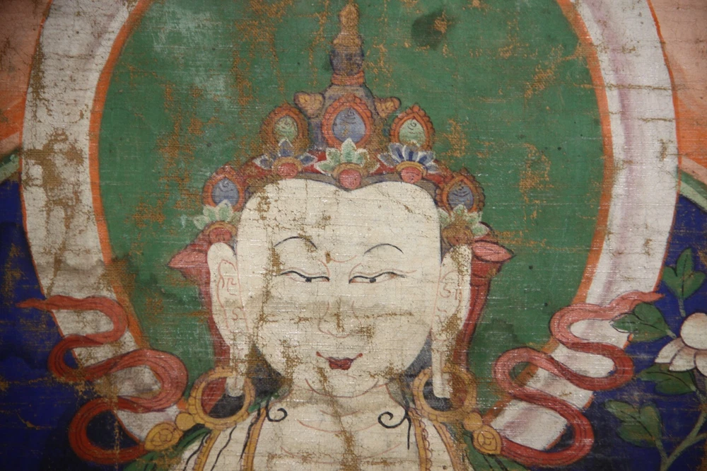 This stunning 19th-century Tibetan thangka showcases the Four-armed Avalokitesvara with exquisite detail, hand-painted in rich mineral pigments on cotton. The vibrant colors and intricate artistry have held up beautifully despite its age, and the minor repairs don’t detract from its spiritual presence. A true masterpiece for collectors of Buddhist art—both visually captivating and historically significant. The seller is responsive and provides thorough details, making the purchase smooth and trustworthy. A rare find for any sacred art enthusiast!