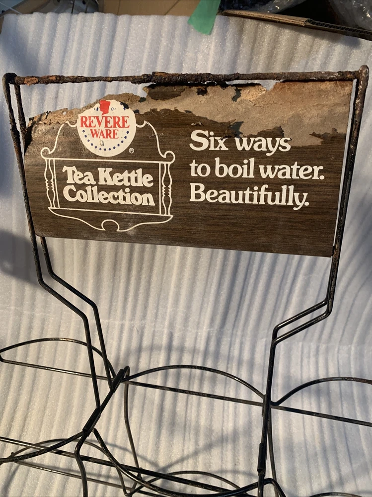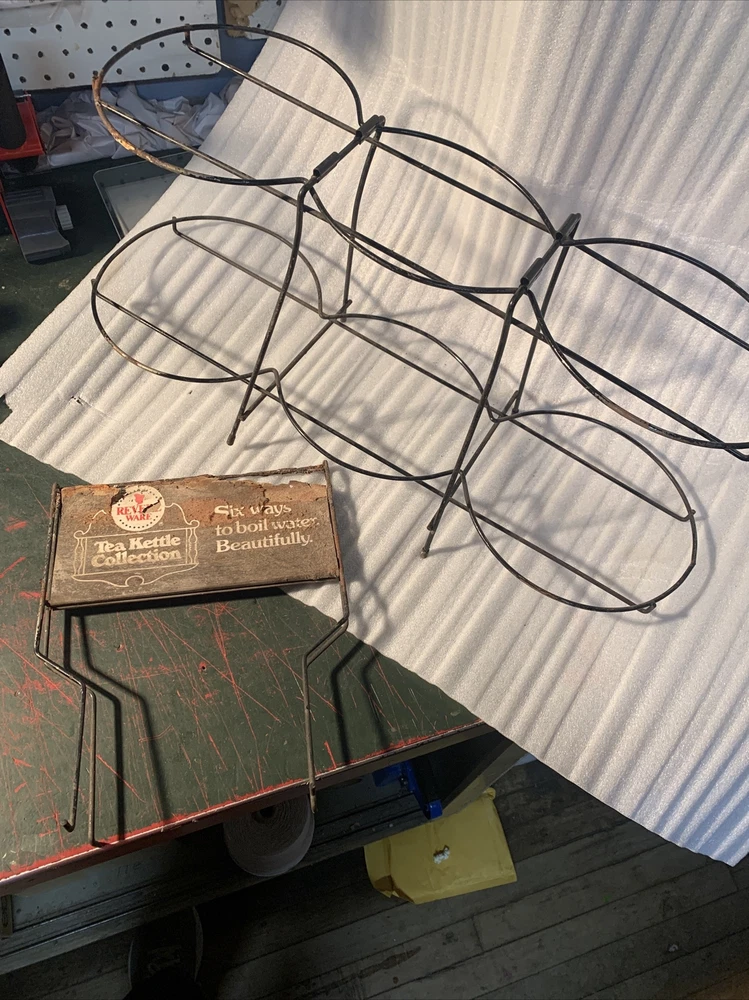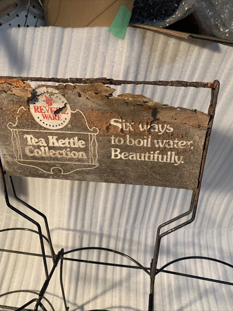 This is a great Vintage find! Found in the basement of an old hardware store that closed over 40 years ago. There is a little rust on the metal and the cardboard sign has wear to it. it could probably be cleaned a little more. rare piece. 25" wide, 9" deep and 23.5" to the top of the sign, it is 10,5" to the second rack. bottom rings diameters are 7.25", 8", 8.75" and the top rack is 5.75", 7.75", 6.75" See pictures for complete condition details. This item comes from a smokefree home, I accept paypal or you can pay when you pick up an item, any other payment questions please email me. I will combine/discount shipping charges on multiple purchases to help save you money. if you buy multiple items, please wait for me to send you an invoice with the discounted shipping on it. Buyer pays $39.99 for standard shipping & packaging costs, in US (lower 48 states) - shipping to hawaii, alaska, Canada, JAPAN,AND OTHER COUNTRIES is extra, please email me for international shipping rates, -----------------Insurance is an additional charge, please ask for insurance if you would like it. Insurance needs to be purchased by the customer, in order to have any coverage for shipments lost or damaged by USPS, FedEx, or UPS. I use Fed Ex ground, UPS, and USPS for shipping, please make sure you are able to receive packages via all these carriers. Please make sure to have the address you want this shipped to added as the authorized address on your paypal account. We can only ship to authorized paypal addresses and we do not accept emails to change the shipping address. ----------------- 30 Day money back return policy, if returned due to buyer changed their mind, the buyer will pay for shipping product back and the original shipping. The refund will be processed upon my receipt of the returned item and full purchase price will be refunded. The item must be in the same condition as when purchased. If item needs to be returned due to my error, I will pay for all shipping. any questions... Please Email me before bidding! Thanks for bidding! 125A