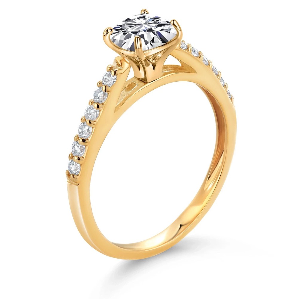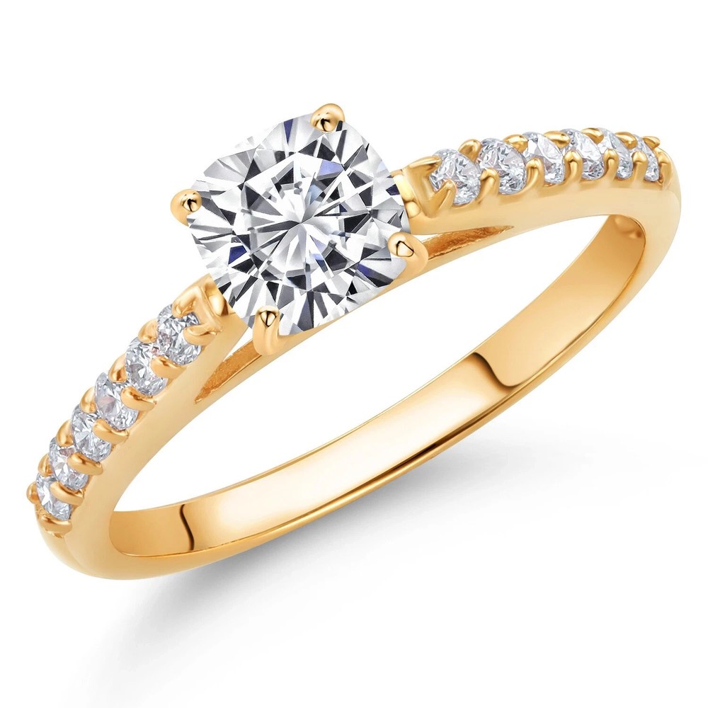 Elevate your special moments with the exquisite 1.80Ct Cushion Cut Natural Moissanite Women's Wedding Ring, beautifully set in lustrous 14k Yellow Gold Plating. The gleaming white moissanite stone, cut to perfection with an excellent grade, sparkles with every movement, creating a breathtaking display of light and color. With a total carat weight of 2.30CT, this ring is a statement of elegance and affection, designed to capture hearts. Crafted with the utmost precision, the ring features a timeless cushion shape, secured in a sturdy prong setting. Every aspect of this piece, from the flawless diamond clarity to the fancy light moissanite color, is meticulously crafted to ensure a luxurious experience. Whether it's an anniversary, birthday, or any other significant occasion, this ring is a timeless gift that symbolizes love and commitment.