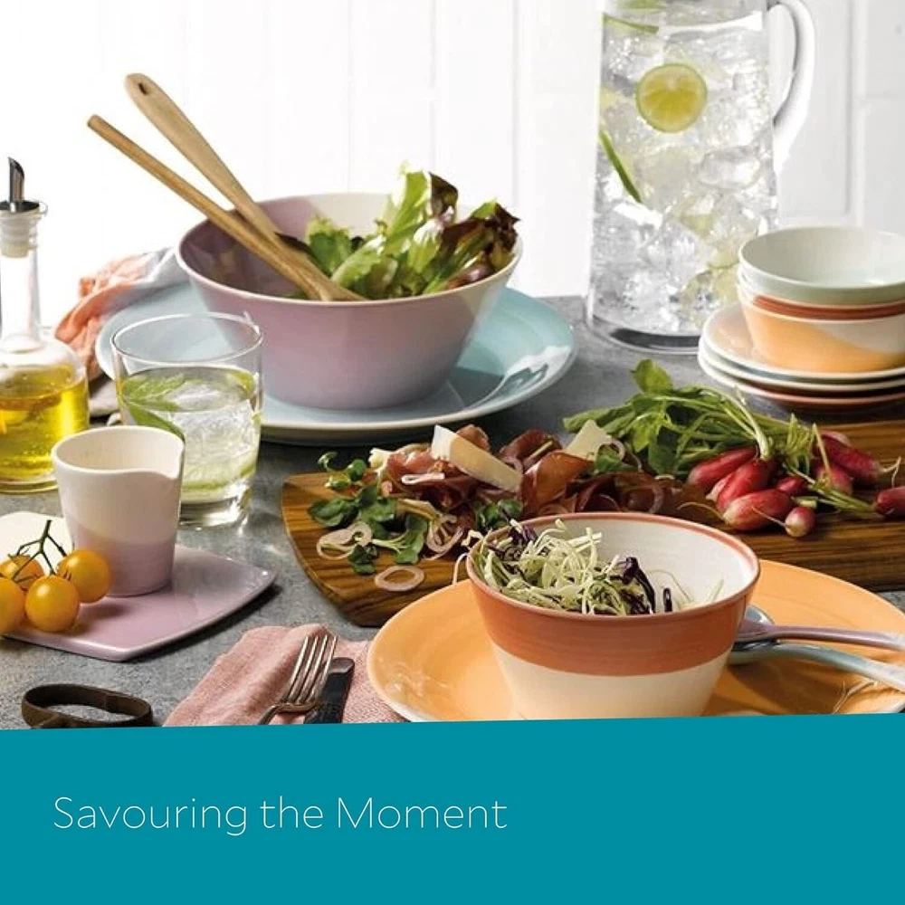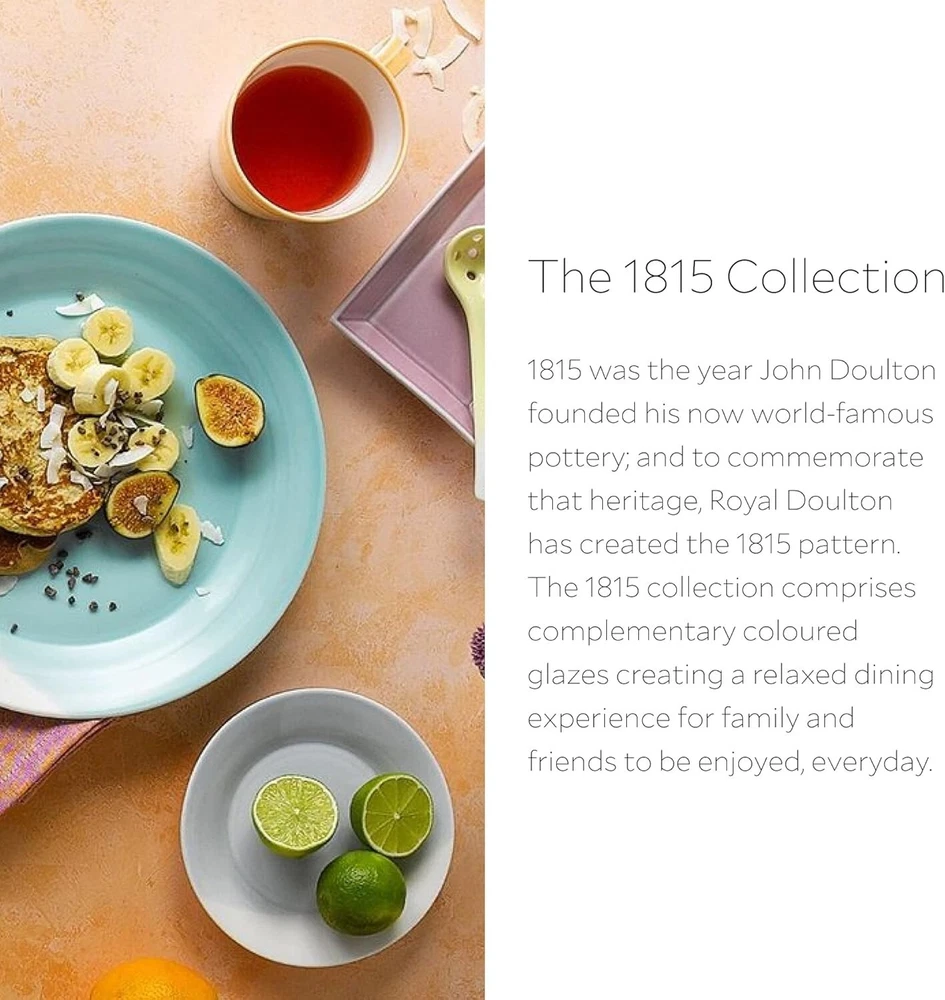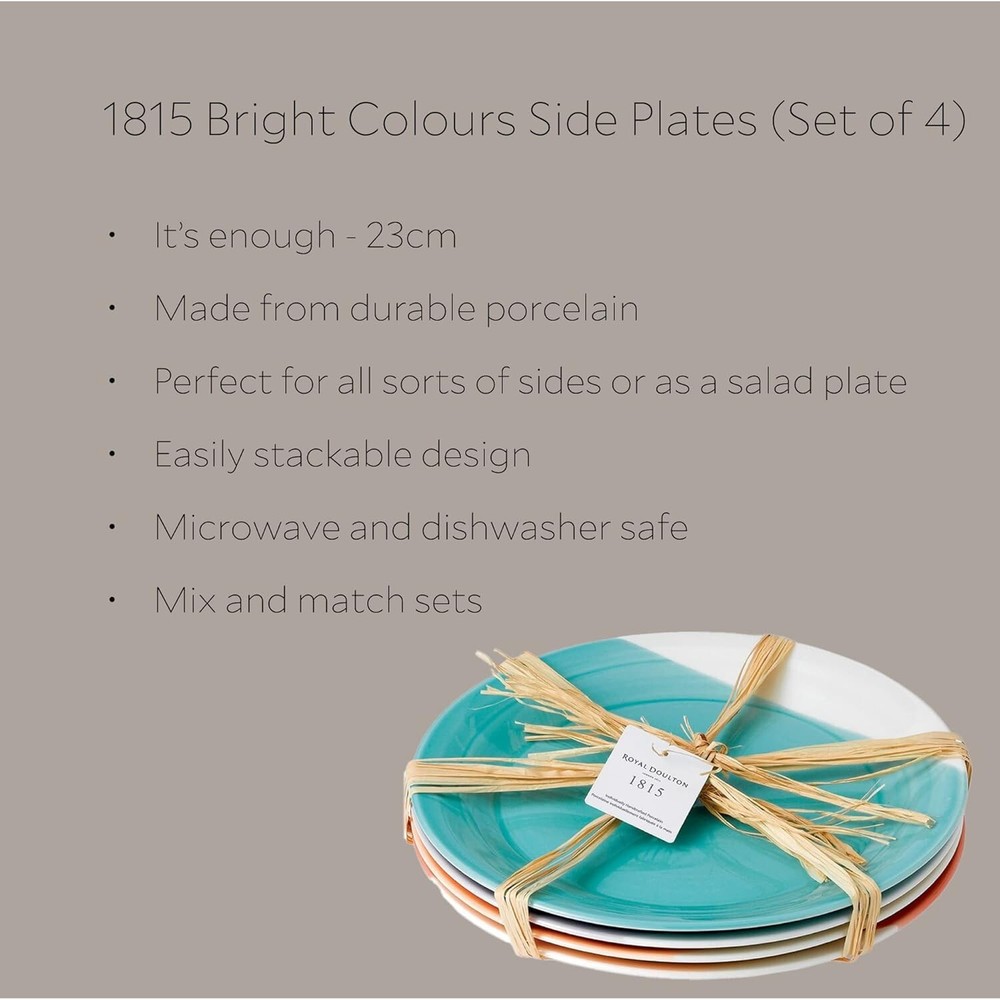 1815 Mixed Patterns Salad Plate, ", Bright Colors, Set of 4 Part of the 1815 Collection by . Complete the set, or combine with other Collections for a unique look Made from durable chip-resistant porcelain Designed with a unique finish, thanks to the hand-dipped glaze technique and brush stroke design Perfect for casual entertaining or for everyday use—breakfast, lunch or dinner Dishwasher safe. Microwave safe 1815 was the John Doulton founded his now world-famous pottery; and to commemorate that heritage, has created the 1815 pattern. This Set of Salad Plates are rendered in vivid shades, with a simple, but striking silhouette and a timeless elegance and sophistication.
