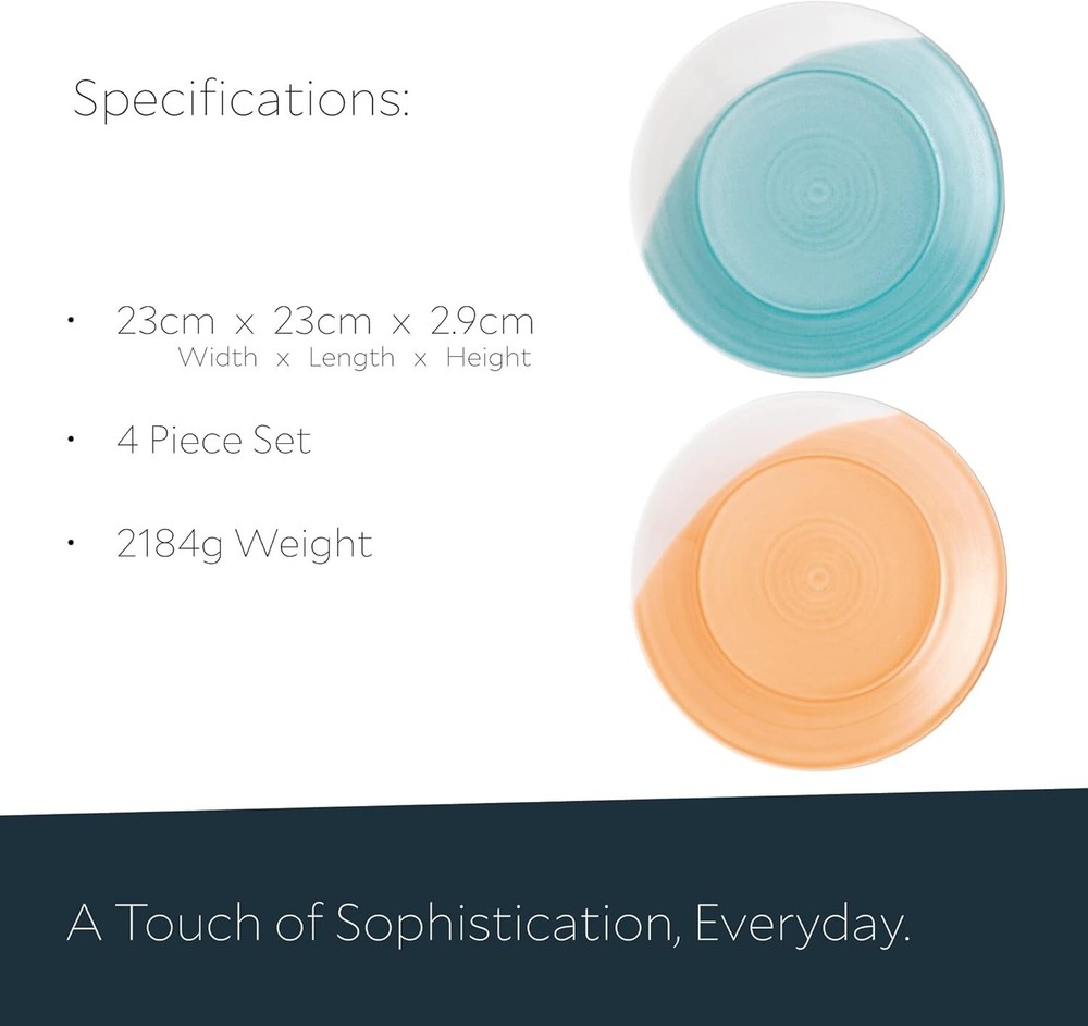 Material: Details In Description Item Shape: Round Pattern: Abstract Brand: Unbranded Theme: Abstract Bright Colors Product Care Instructions: Dishwasher Safe Recommended Uses For Product: Salad Size: 9.4" Color: Bright Colors Seasons: All Seasons Is The Item Microwaveable?: Yes Included Components: 4 - Salad Plates 9.4" Reusability: Reusable In Non-sterile Environments gtin13: Does Not Apply Style: Salad Item Type Name: Salad Plate Special Feature: Durable Special Features: Durable Type: Salad Plate Year Manufactured: 1815 Material Features: Durable, Chip-resistant Item Weight: 1.5 Pounds Finish Type: Glazed UPC: Does Not Apply Set Includes: Plate, Salad Plate Global Trade Identification Number: 00652383751941 Is The Item Dishwasher Safe?: Yes