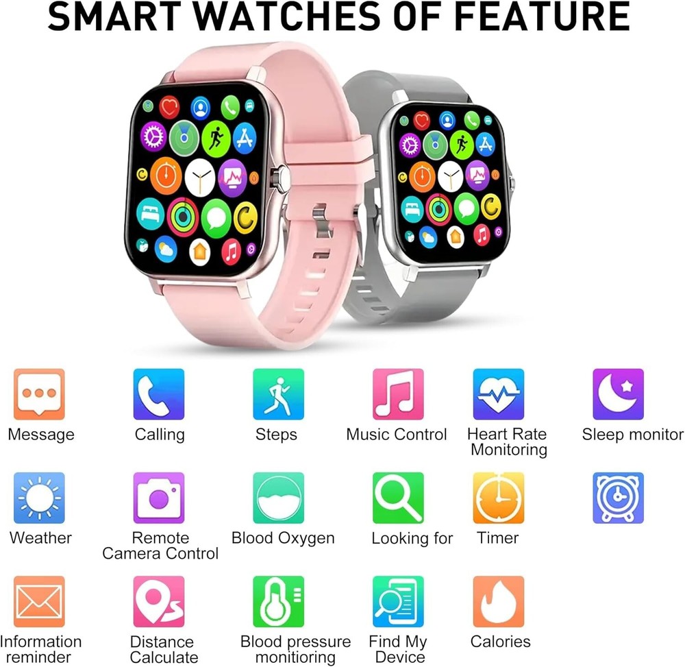 1.81" Upgraded Full Touchscreen Smart Watch for Android iPhones with Heart Rate Description : 1.81'' Touch Screen & Custom Watch Face - The 1.69'' screen smartwatch features 240*286 pixels HD full touch color screen, which can provide you with high quality touch and visual experience. After the bracelet is connected with the Mobile app, you can download all kinds of exquisite dials form the Mobile app. You can also turn the scenery and beautiful pictures in the mobile phone into the background of the dial to meet the diversified needs of your. 24/7 Heart Rate Monitor & Sleep Tracker - Smartwatch fitness tracker can provide all-around body data tracking, real time monitor your heart rate, blood pressure, blood oxygen (SpO2) and your deep, light sleep state which can help you better understand your health. NOTE:* This product is not a medical device, the measurement data and results are for reference only, not as a basis for diagnosis and treatment.* All-day Activity Tracking - This smart watch has 7 kinds of sports modes(bike riding, Running, Tennis, Strength training, Basketball, Volleyball, Football). During your exercise, activity tracker will record your data like, steps, calories burned, etc. Smart watch is waterproof rating, ensuring worry-free use even while washing hands, face, or engaging in sweaty activities. Smart watches for men women are the best choice for sports. NOTE: Do not use fitness tracker watch in diving, sauna or hot water. Smart Notifications - After the smart watch is connected with Mobile phone app, when there is a message from SMS or social app(WeChat、QQ、Facebook、Twitter、Line、Whatsapp、Instagram), the bracelet will vibrate to remind you. Stay connected with calls, text, other app notifications, and convenient tools like timer, Alarm clock, Stopwatch, Music controller, Weather, Sedentary reminder, Find your phone, etc. to meet your daily use. Smartwatches For Android IOS Phones - The sports watch is compatible with iOS 9.0 and Android 5.0 and above devices(not for PC or tablet). Download and install the Mobile phone app, bind the smartwatch to your cell phone. You can make and receive calls on the watch or online music, and you can receive alerts of the SMS, incoming calls, and SNS. Long Battery Life & Multi-Functions - When fully charged in 2.5 hours, it lasts for 7 days, with standby time exceeding 30 days. You can relax and enjoy more than a week of travel or work. Smart watches and "Fitprot" app have many practical tools, such as weather forecasts, stopwatch, timer, music control/ play, adjustable brightness, find phone/ watch, smart alarm clock, camera control, sedentary reminder, ect.NOTE:Please read the manua l carefully before using these functions to understand how to connect to bluetooth.